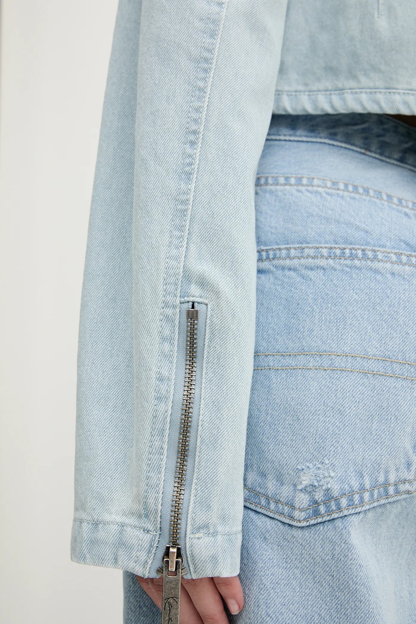 - Prosty, nie blokujący ruchów fason. - Zapięcie na suwak. - Suwaki u dołu rękawów. - Model bez podszewki. - Długość: 44 cm. - Szerokość pod pachami: 42 cm. - Wymiary podane dla rozmiaru: S.