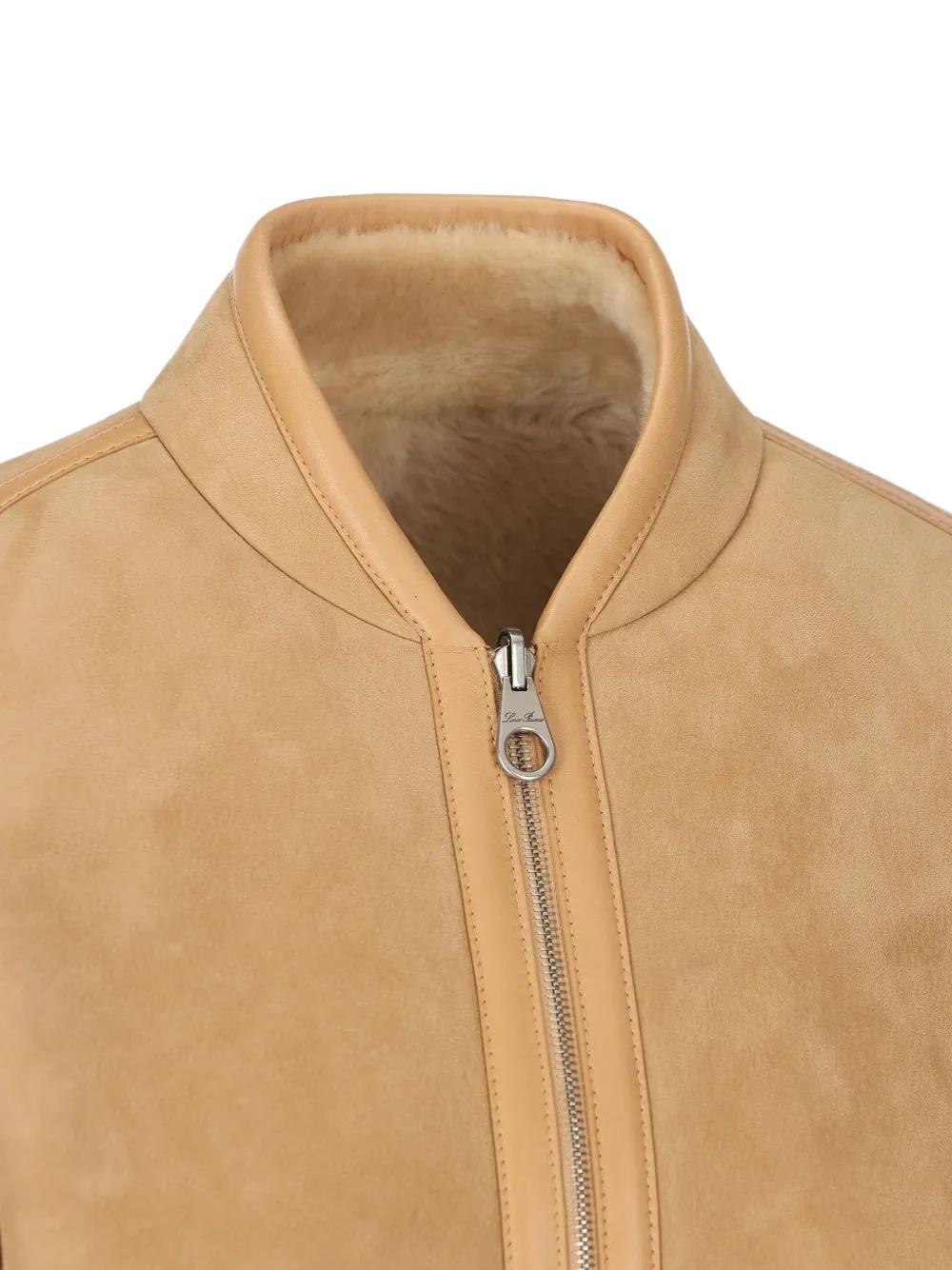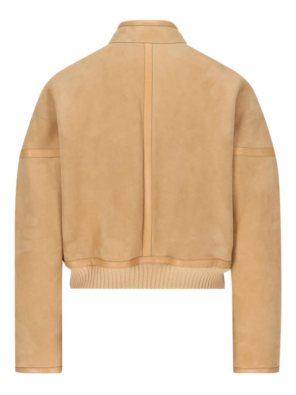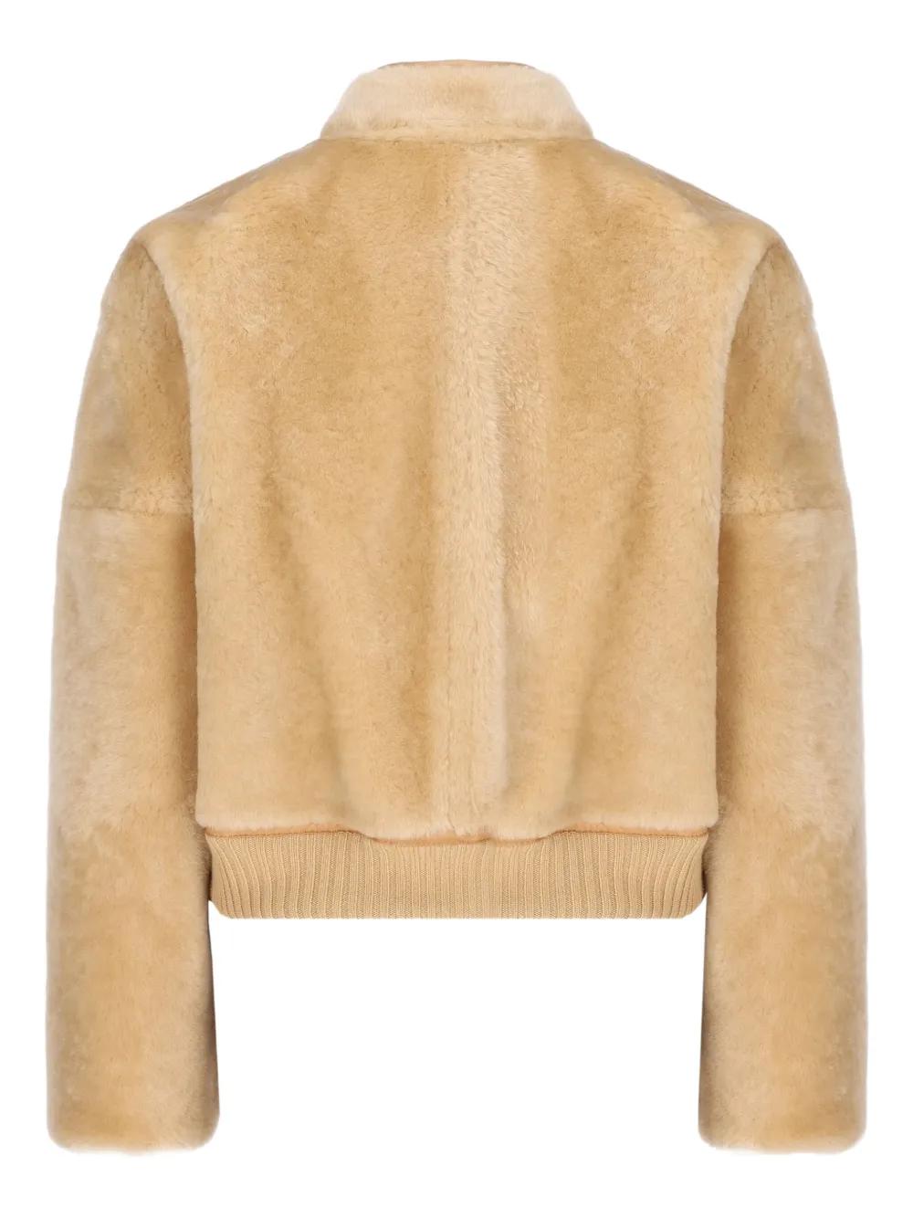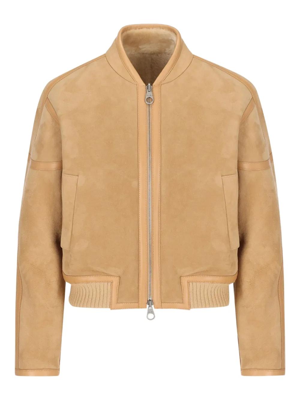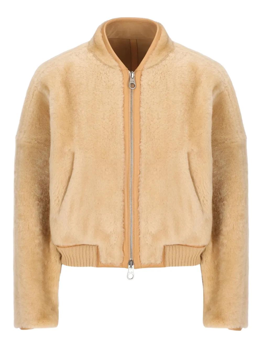 beige lambskin leather long sleeves reversible feature two-way zip closure side pockets ribbed hem