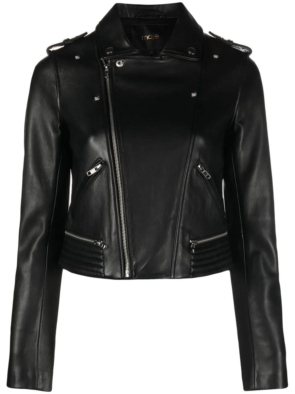 black lambskin cotton blend notched collar epaulettes press-stud fastening off-centre front zip fastening front zip fastening pockets long sleeves full lining