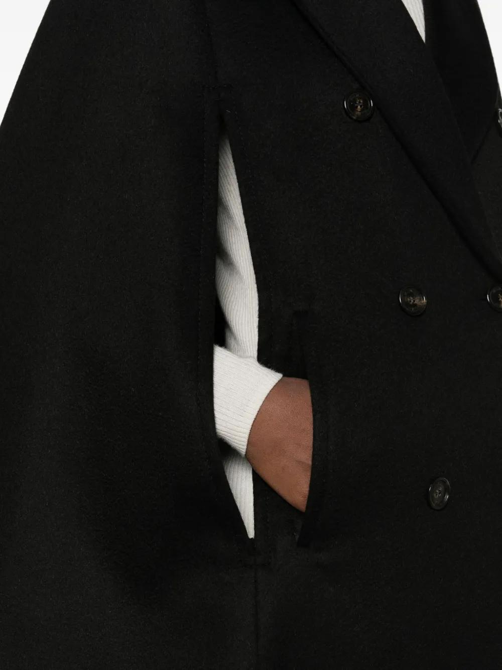 Valentino Ready To Wear midnight cashmere fringed edge fully draped long sleeves mid-length