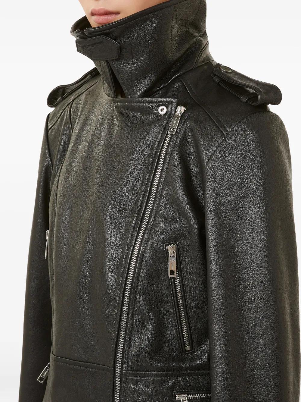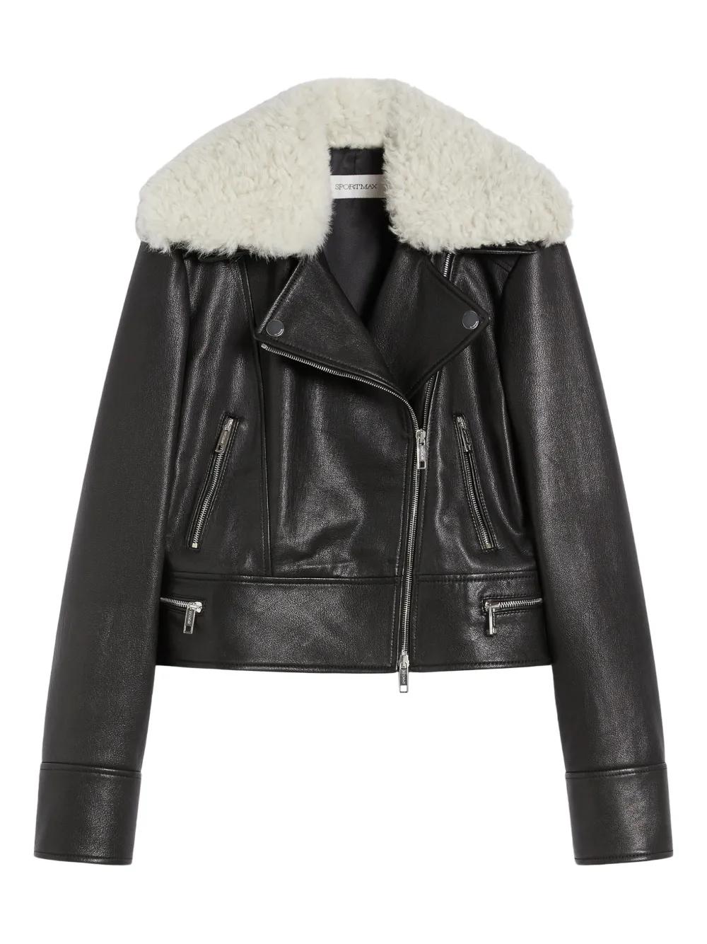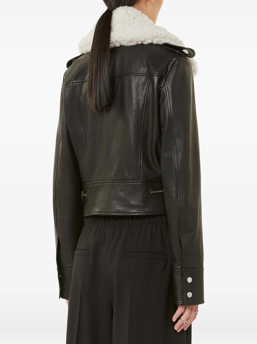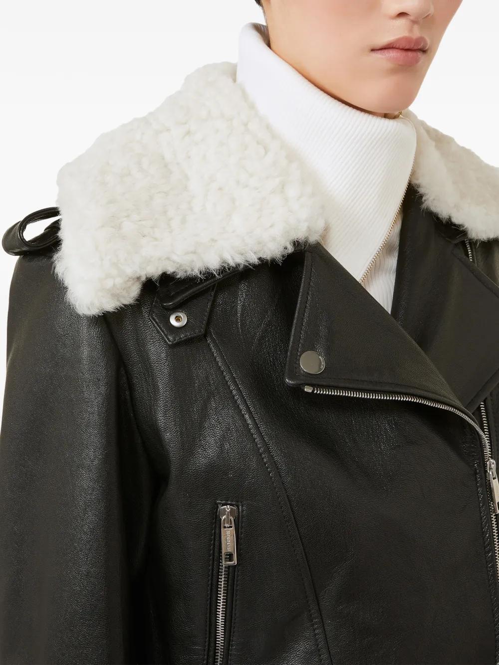black goat skin shearling collar zip fastening silver-tone hardware press-stud detailing