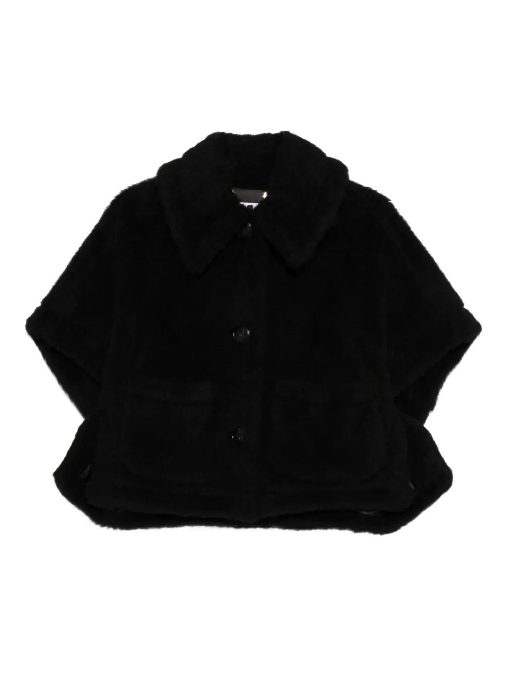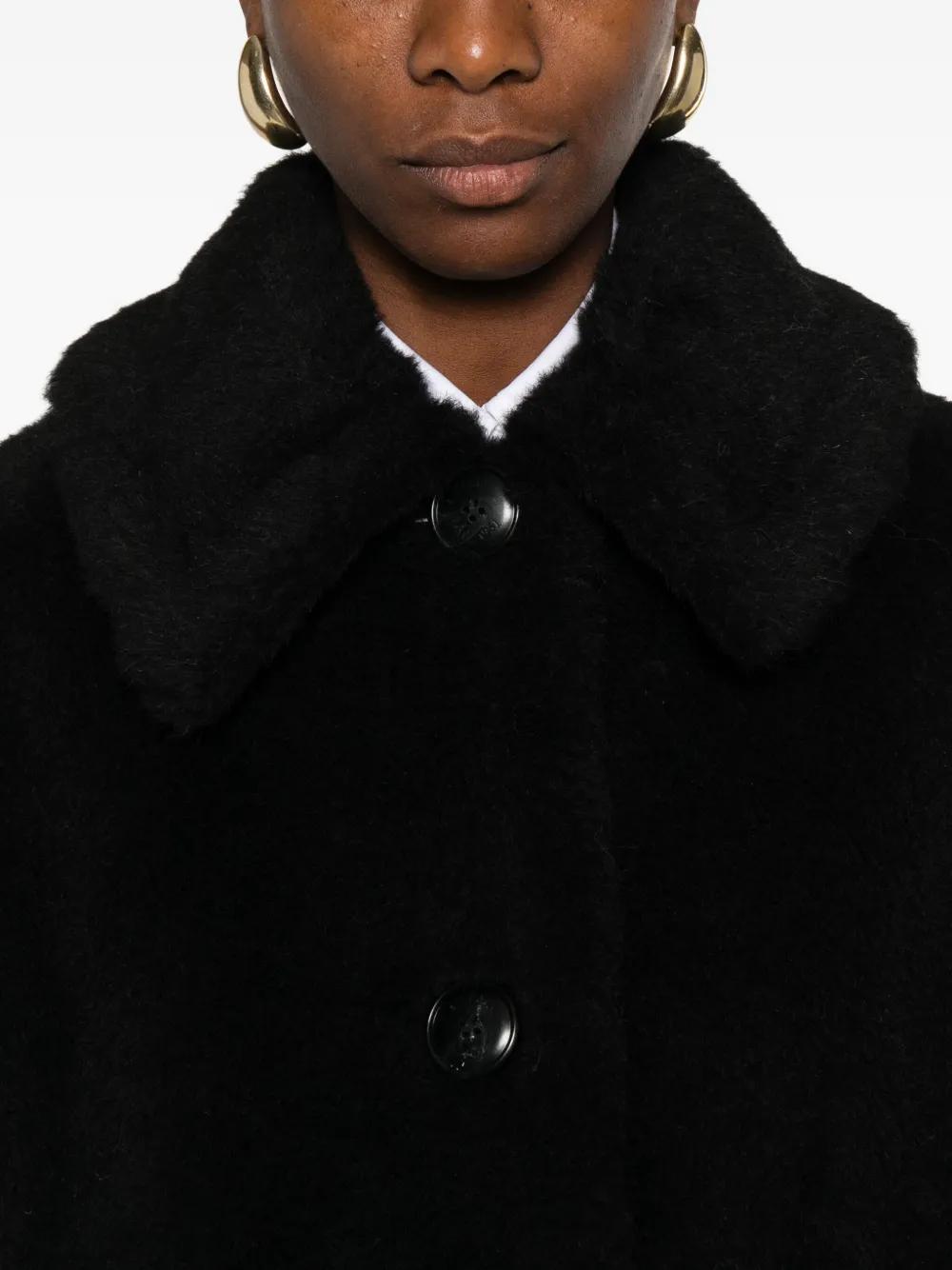black alpaca wool blend short sleeves three button front closure patch pockets teddy texture