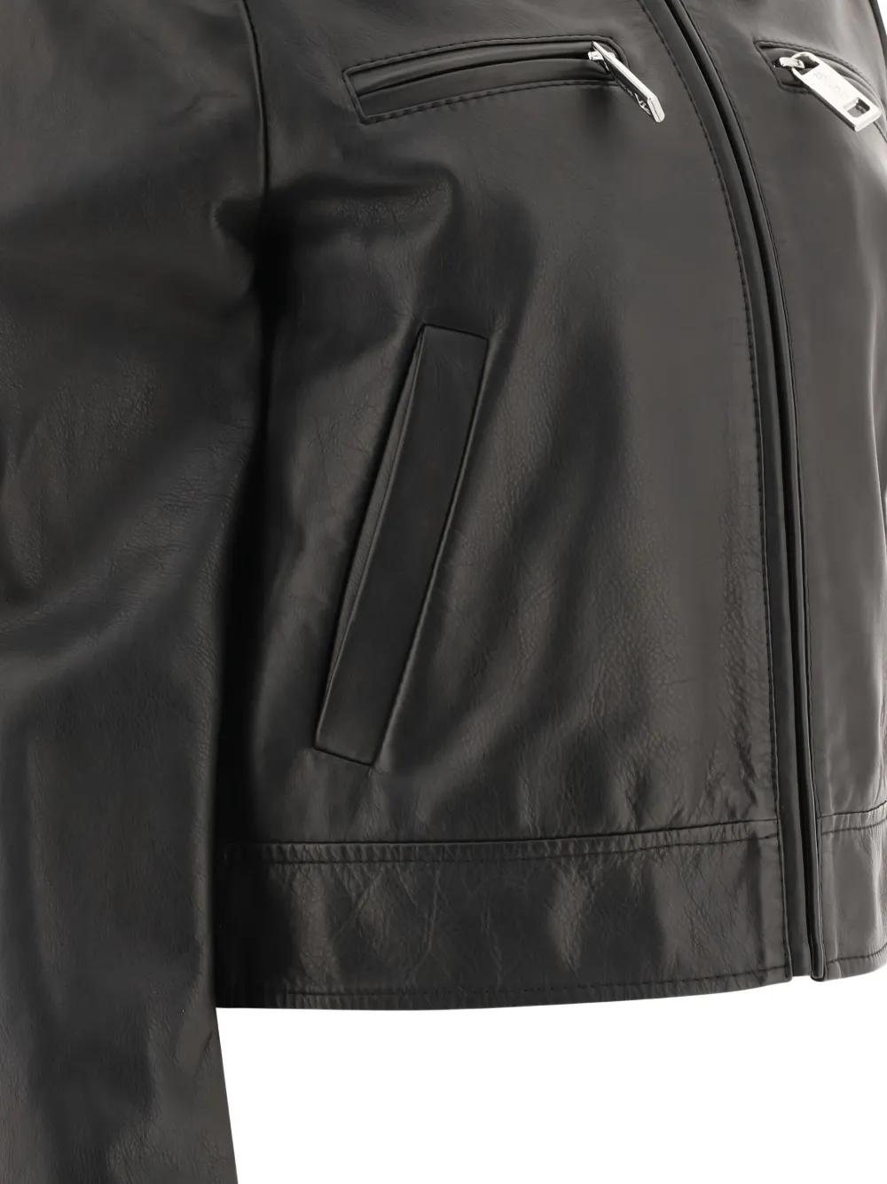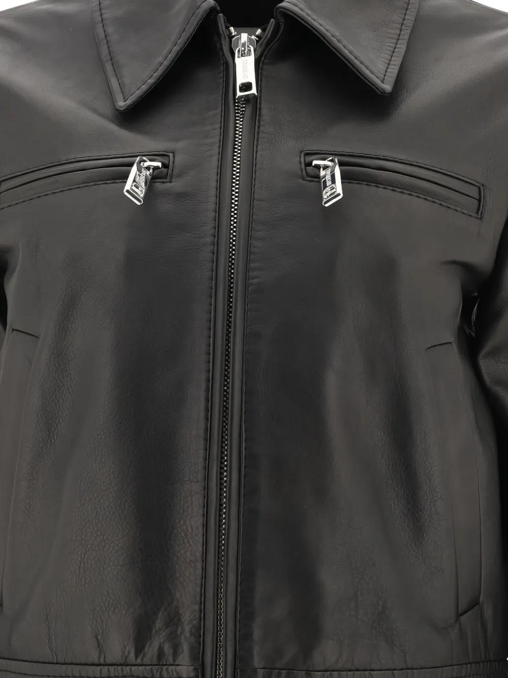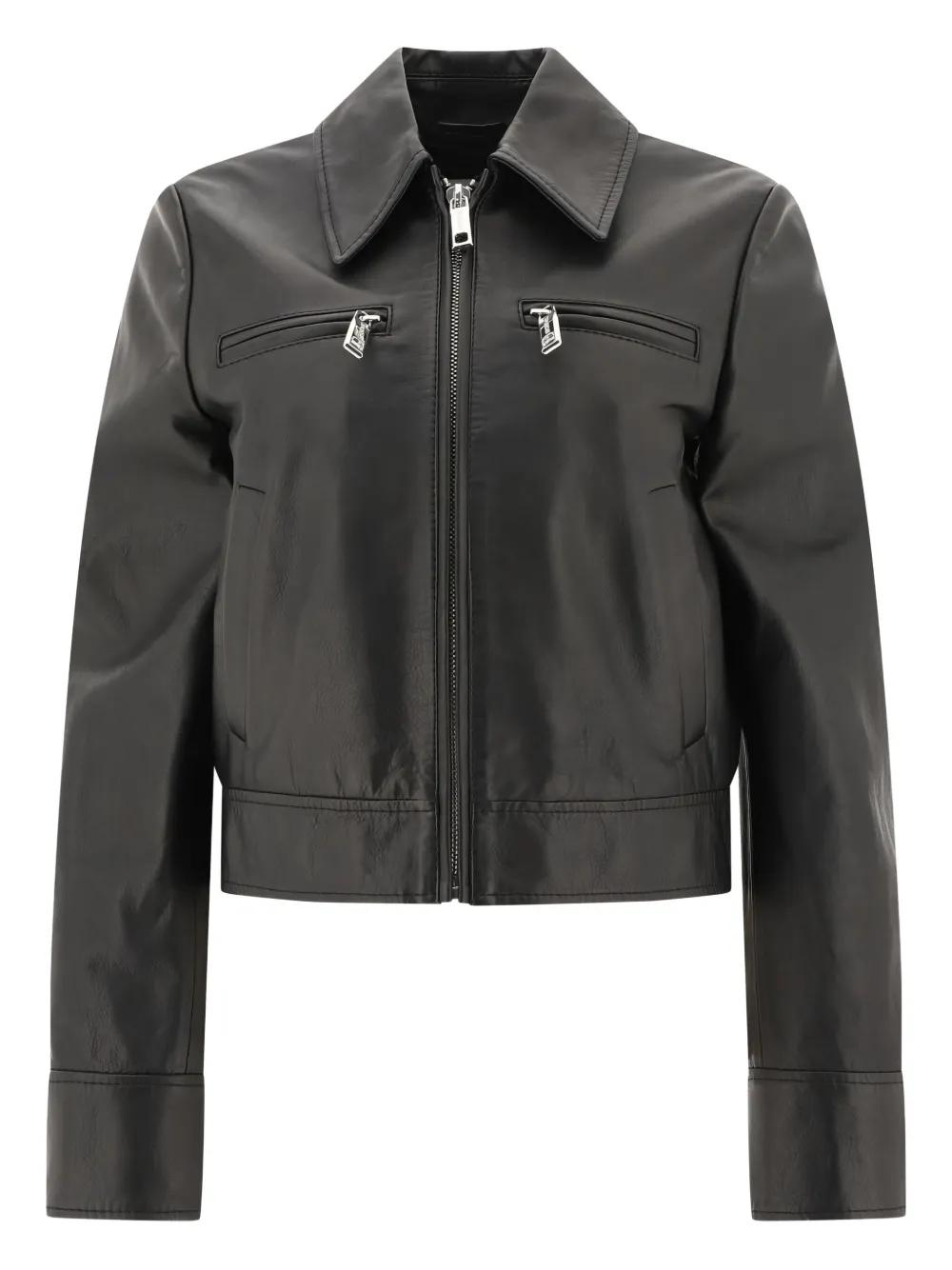 black pointed collar dual zippered pockets long sleeves clean back design centre zip fastening