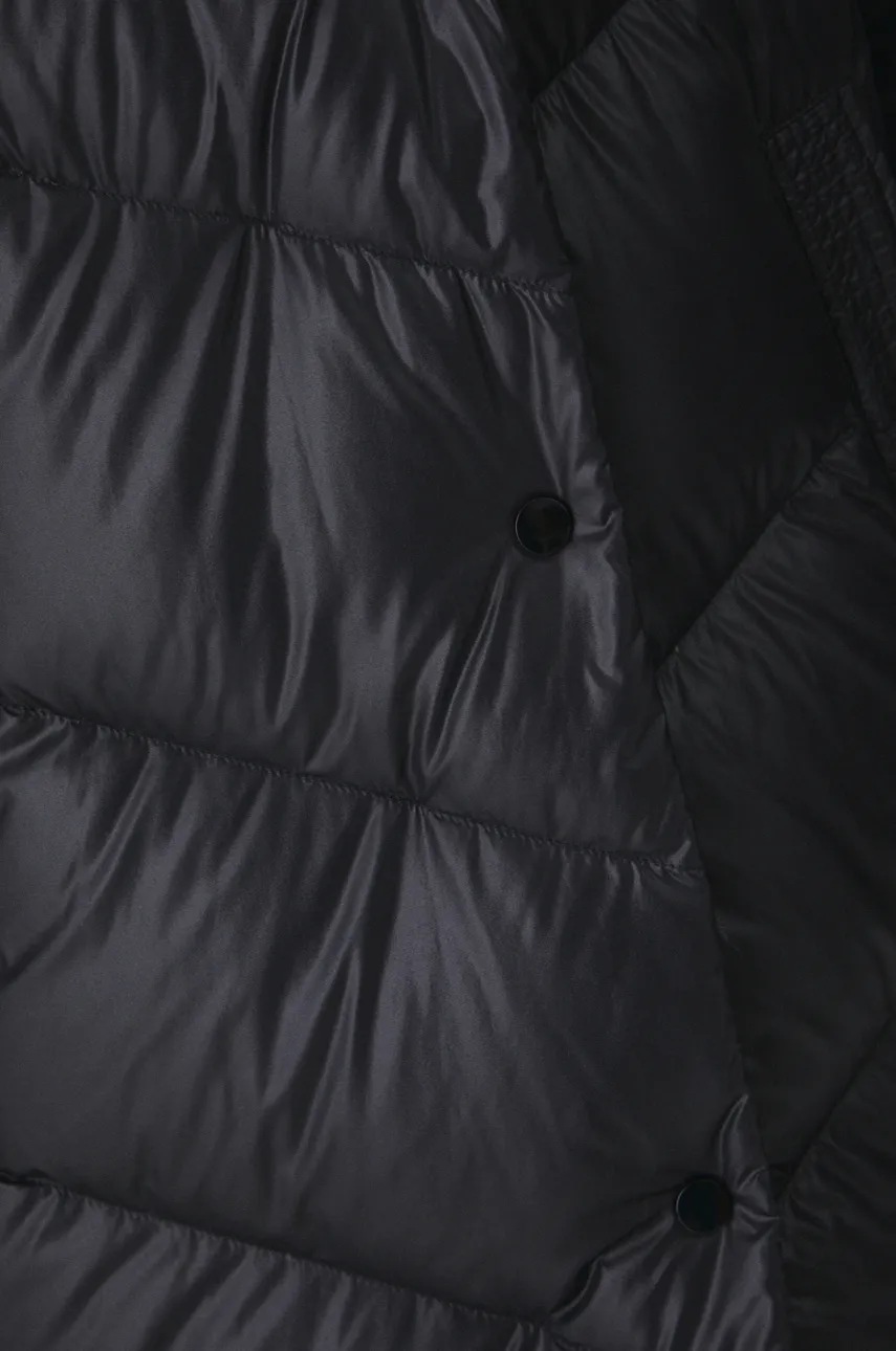 - Fason regular. - Zapięcie na suwak i zatrzaski. - Podwyższony kołnierz. - Nieodpinany kaptur. - Wsuwane kieszenie zewnętrzne. - Ocieplony model na podszewce. - Wypełnienie z naturalnego puchu i pierza. - Pikowany model. - Długość rękawa: 64,3 cm. - Długość: 106 cm. - Szerokość pod pachami: 56 cm. - Szerokość w ramionach: 44 cm. - Wymiary podane dla rozmiaru: S.