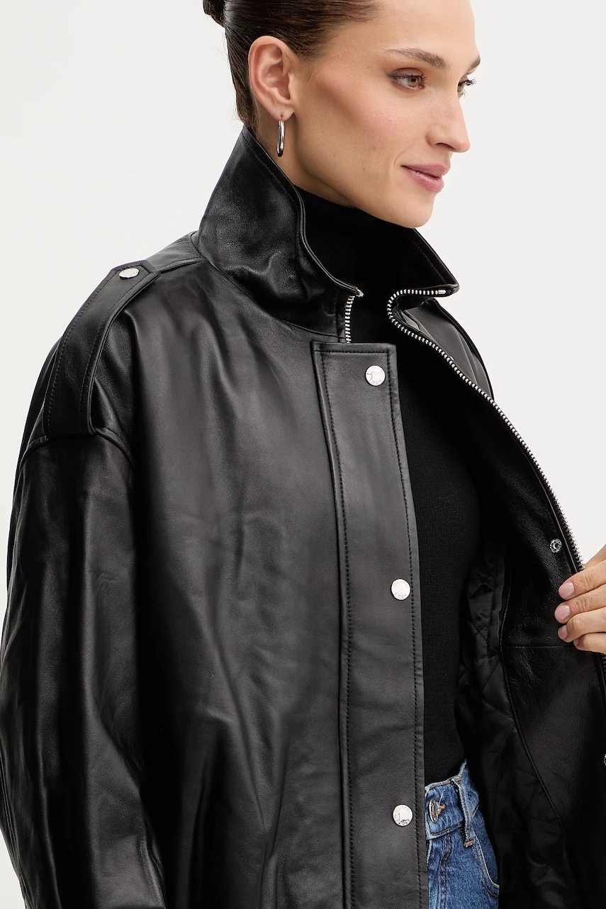 MICHAEL Michael Kors kurtka skórzana kolor czarny przejściowa MF520IXFAF