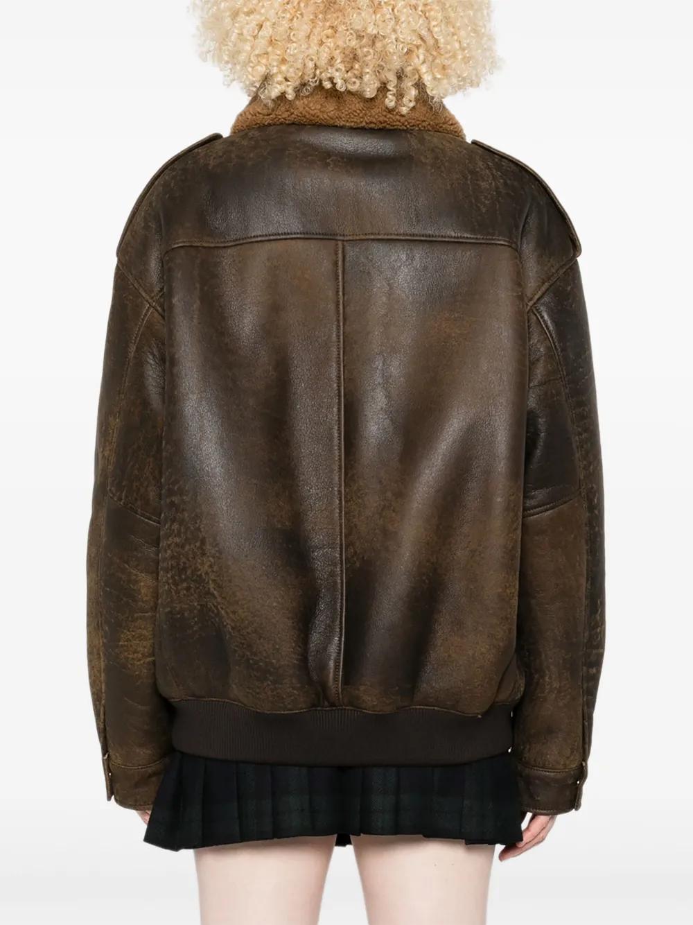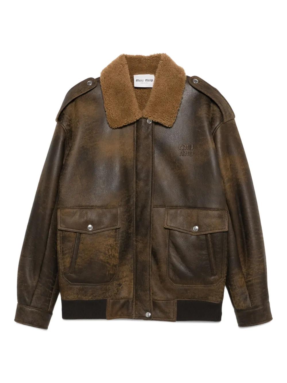 Miu Miu leather bomber jacket - Brown