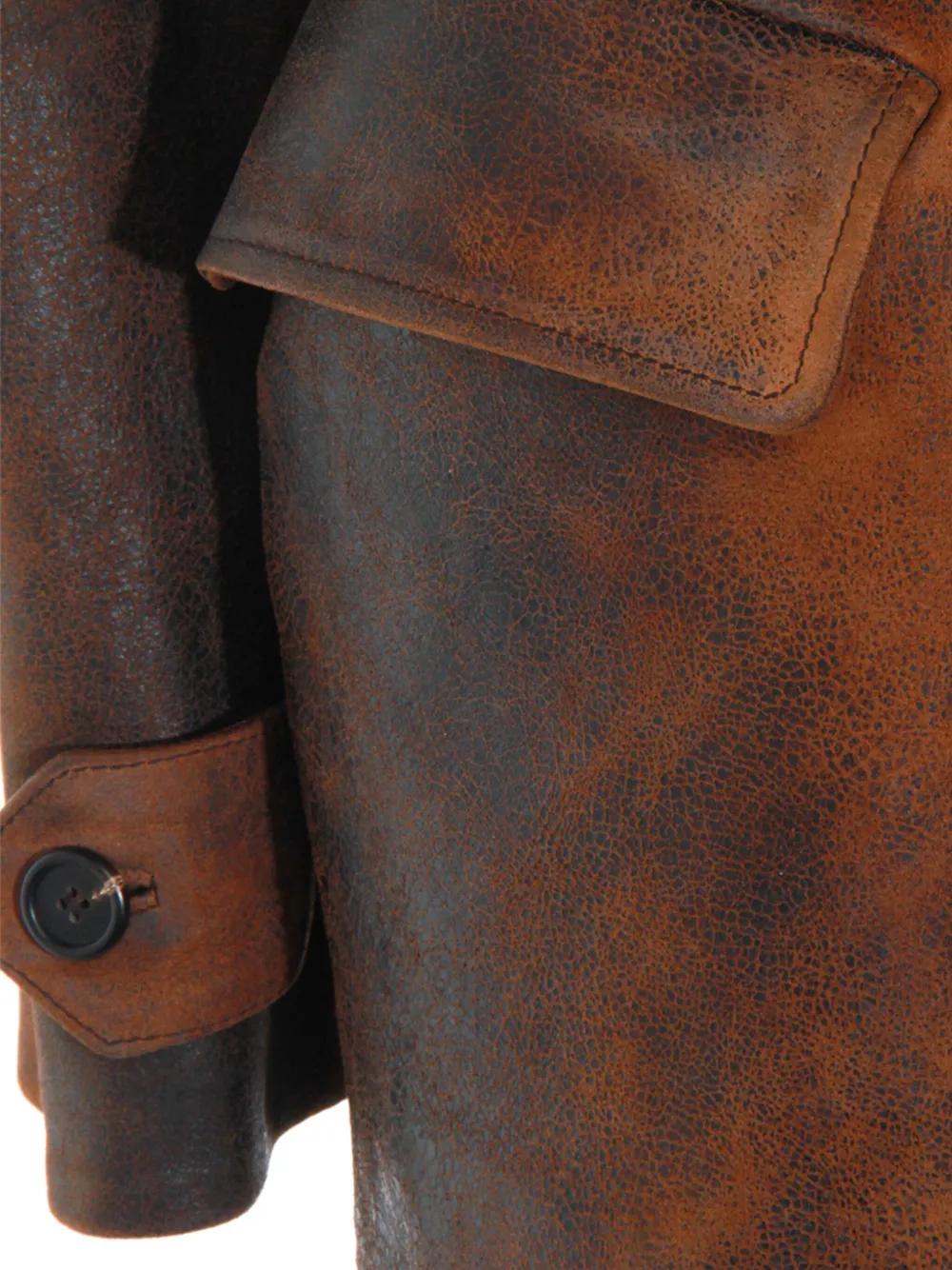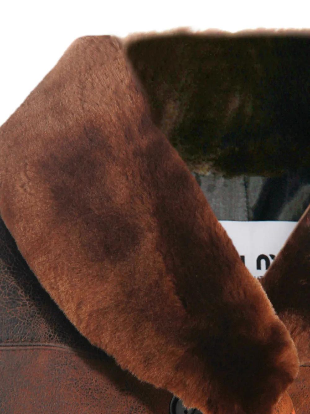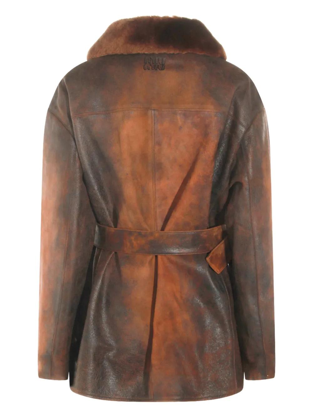 brown shearling collar double-breasted button fastening belted waist flap pockets