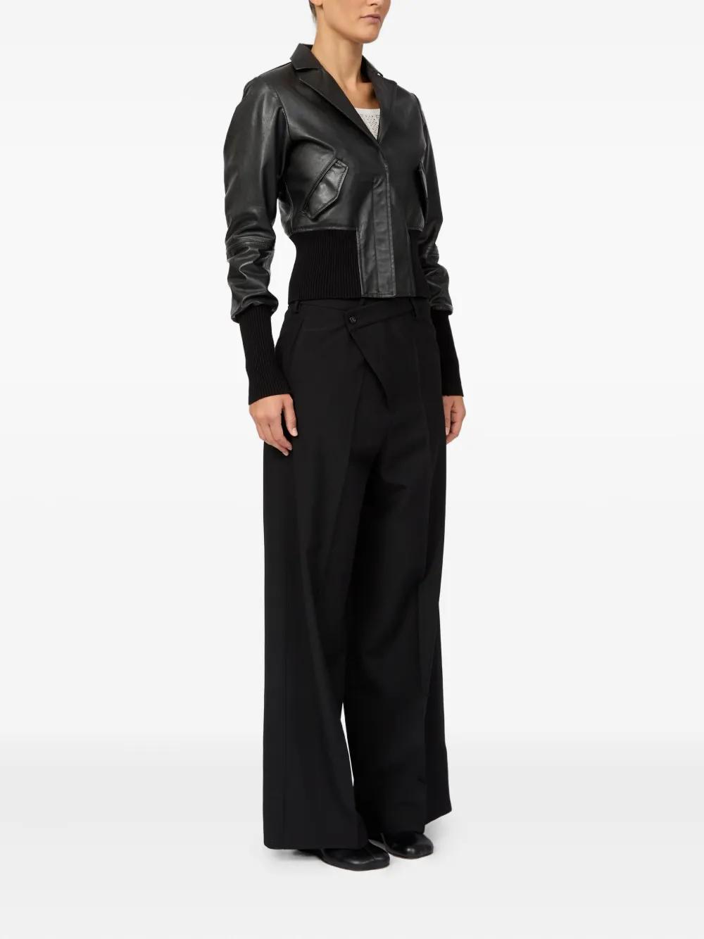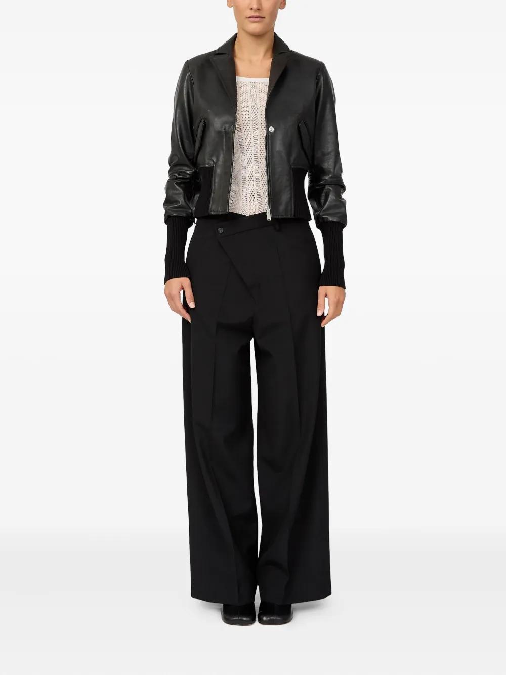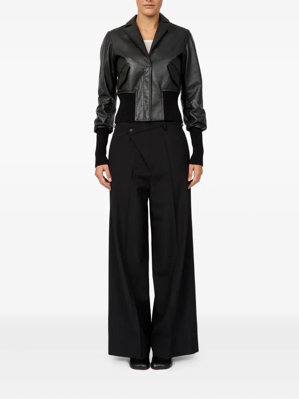 black concealed front fastening notched lapels long sleeves elasticated hem