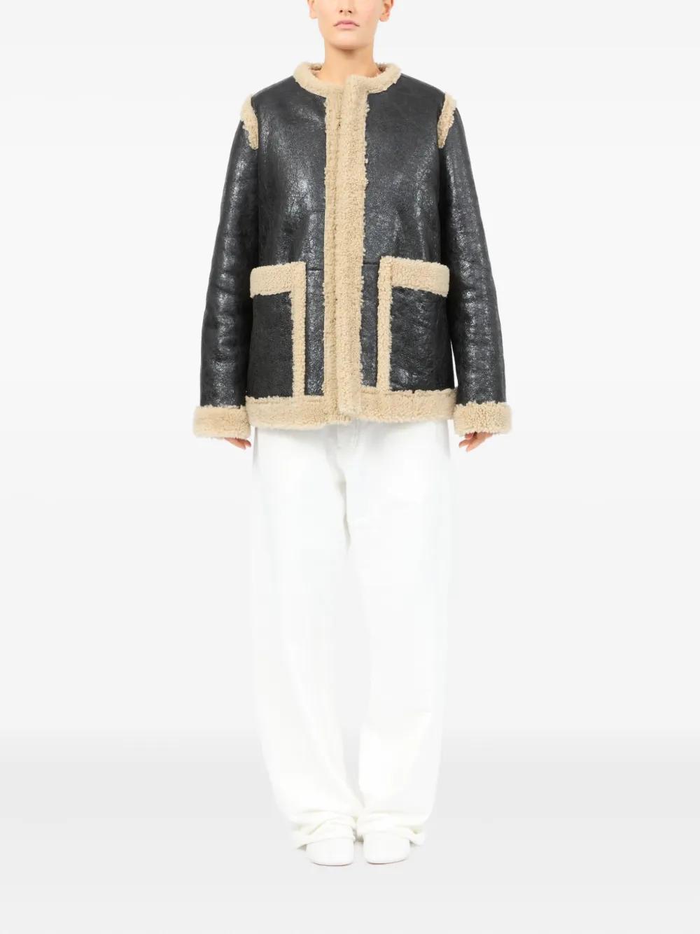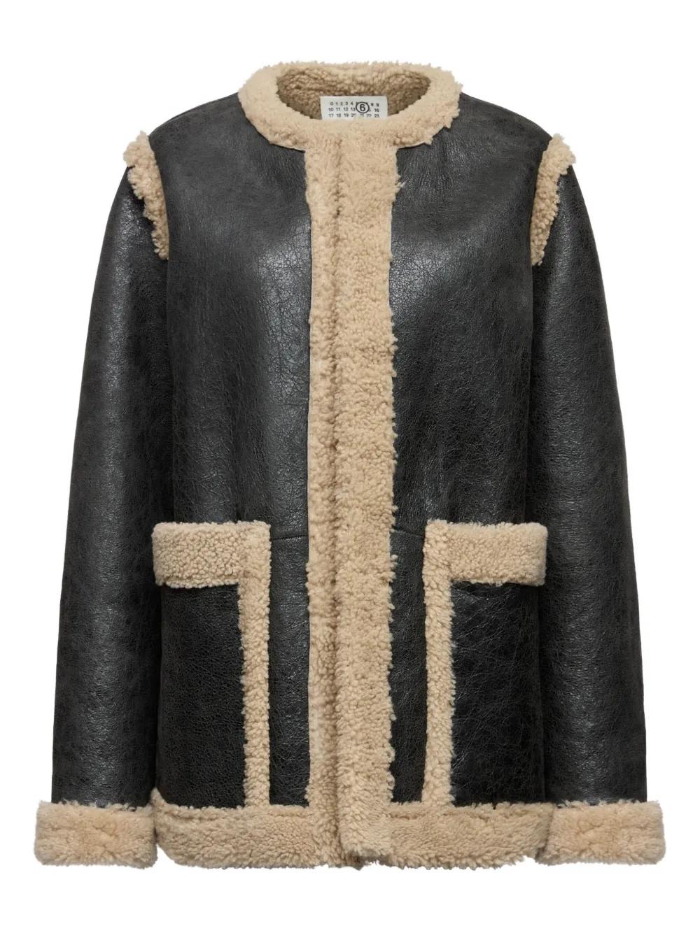 MM6 Maison Margiela leather shearling-panels jacket - Black