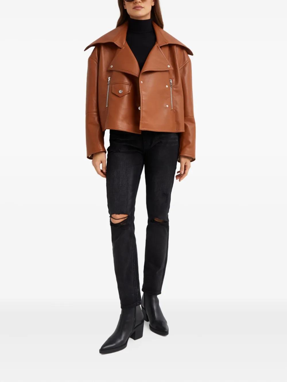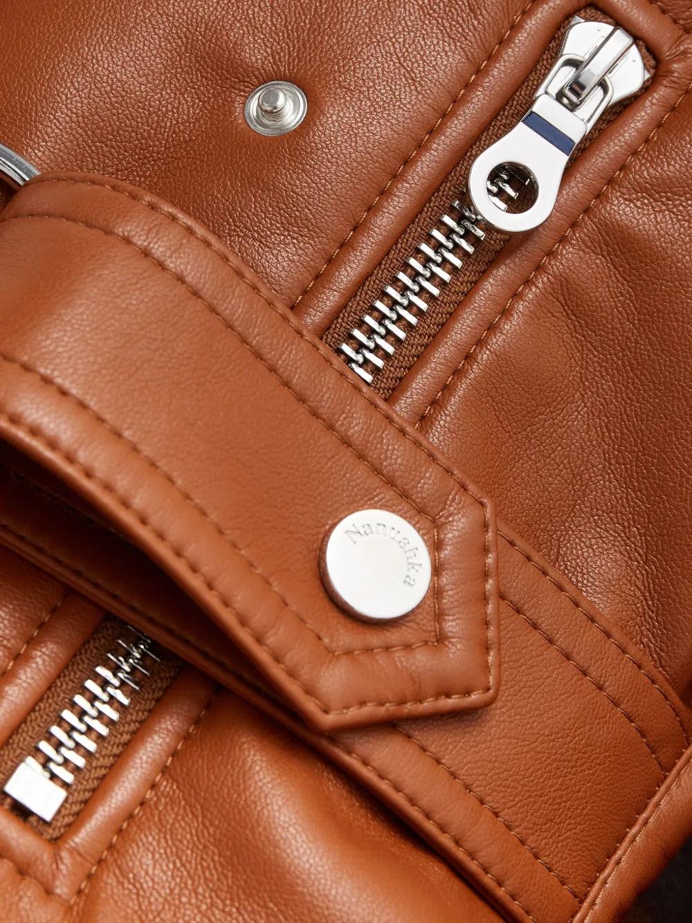 brown wide shawl collar button fastening zip pockets zip cuffs belt