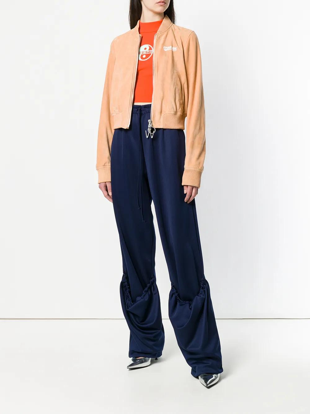 The Milan-based fashion and lifestyle label Off-White is mainly inspired by the youth culture. Drawing influences from sportswear and hip-hop, expect punchy prints, graphic lines and laidback designs. Expertly crafted from super soft goat skin, this free as a butterfly bomber jacket from Off-White features a ribbed collar, a front zip fastening, long sleeves, side slit pockets, a ribbed hem and cuffs and a butterfly print to the back and a women print to the chest.
