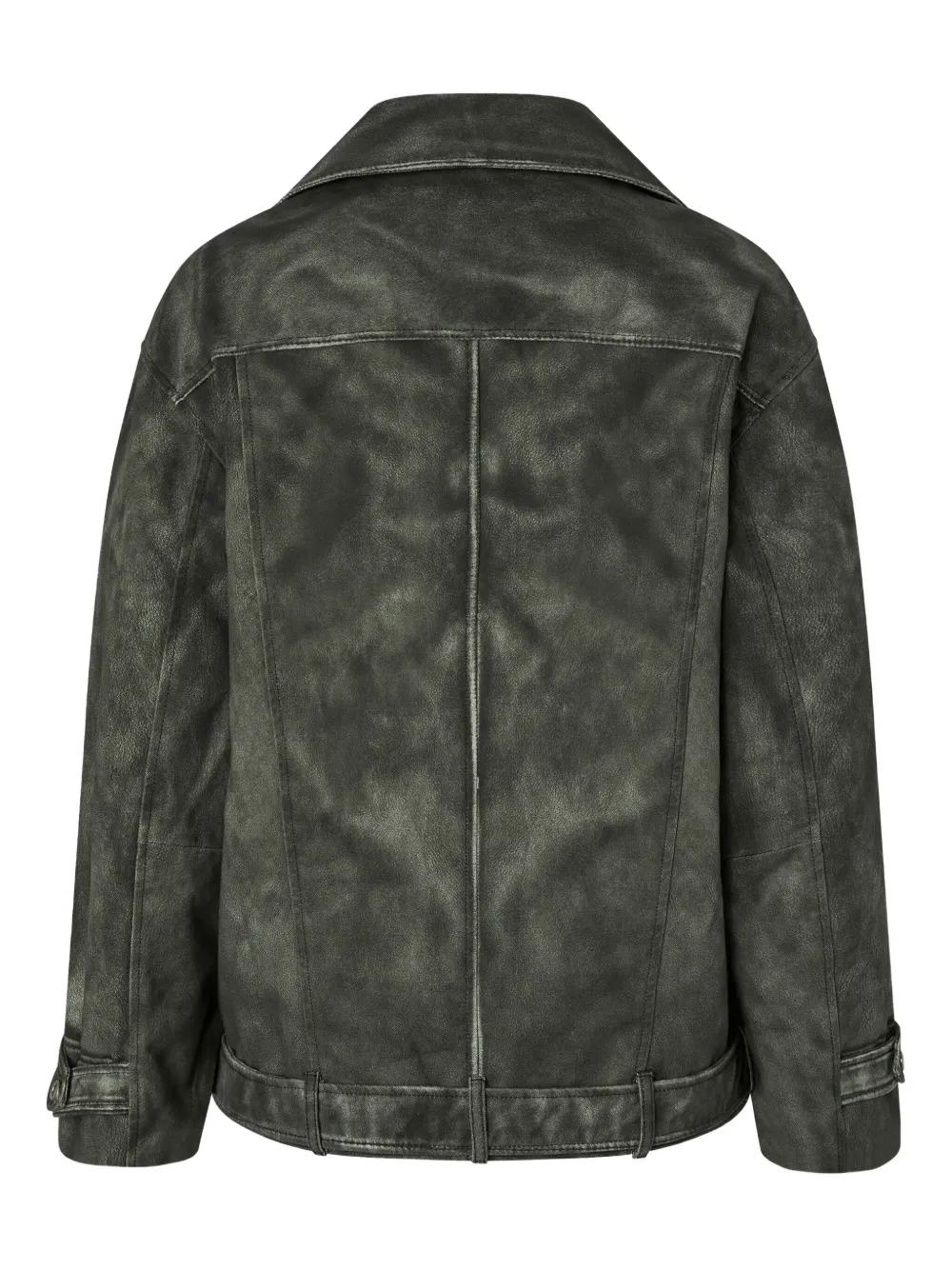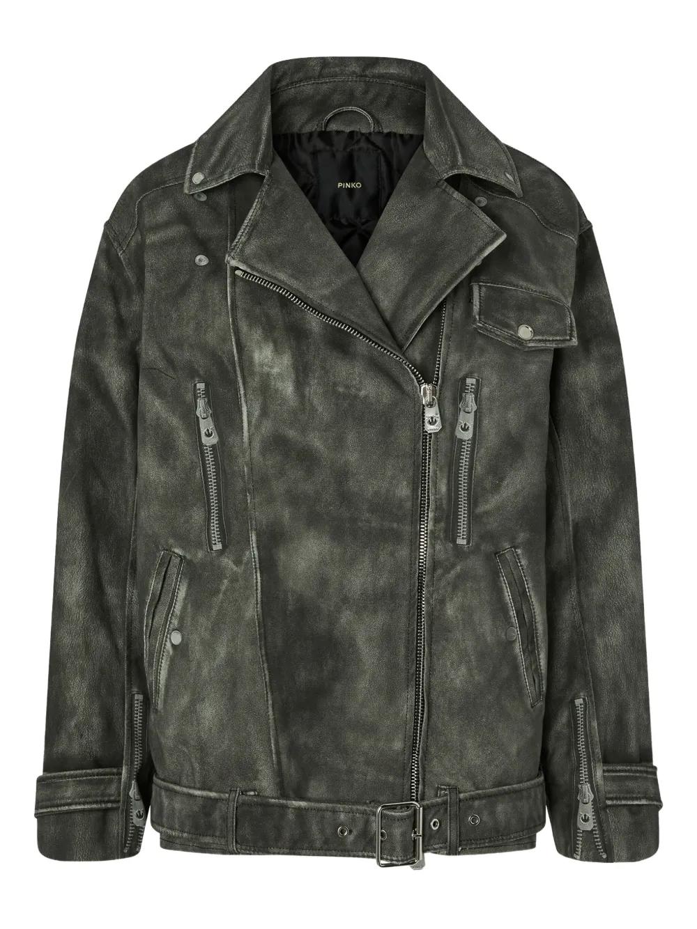 dark-grey asymmetrical zip fastening belted waist long sleeves zipped cuffs