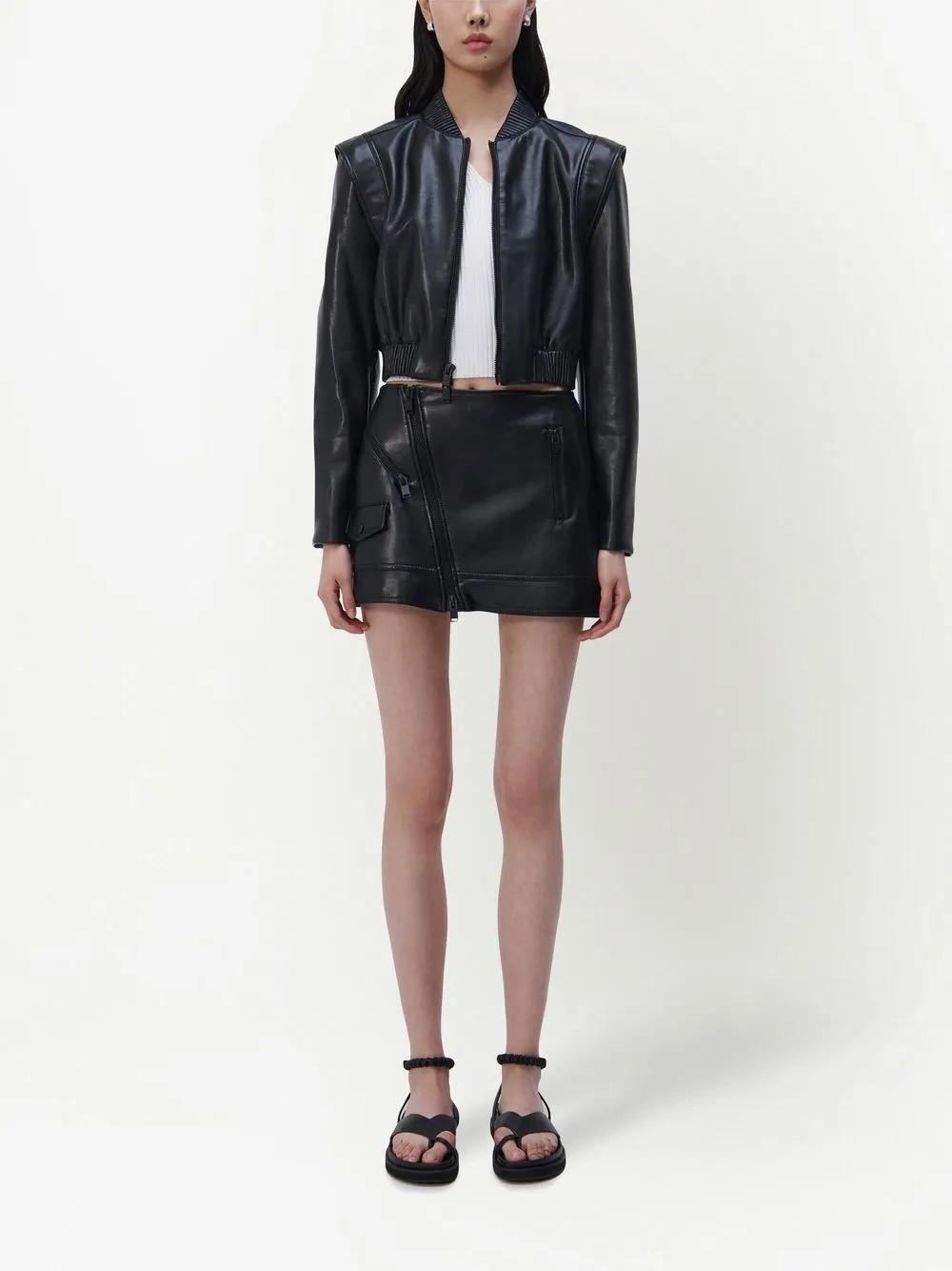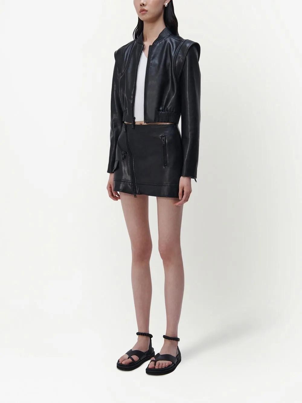 black ribbed trim band collar front zip fastening long sleeves fitted-cuff sleeves two side slit pockets cropped