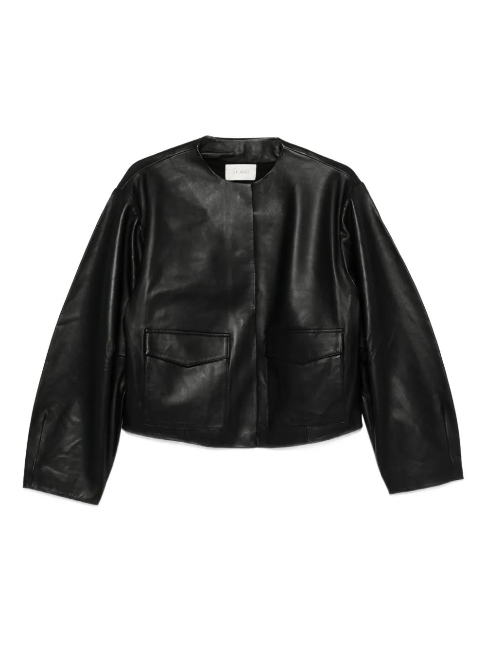 burgundy leather construction button fastening flap pockets notched collar long sleeves