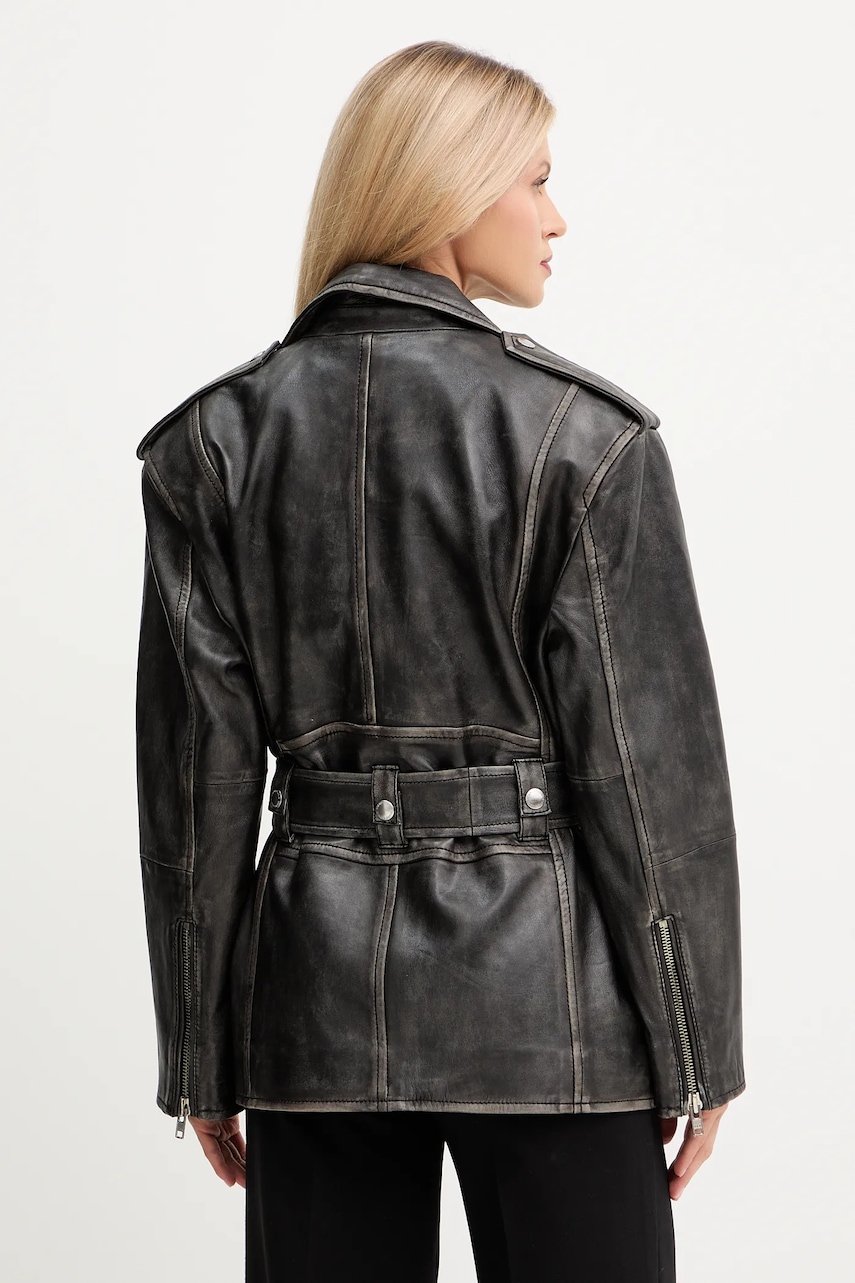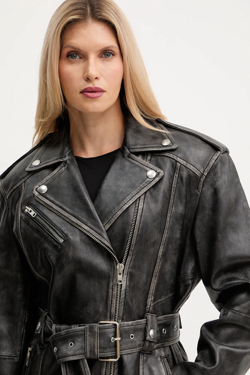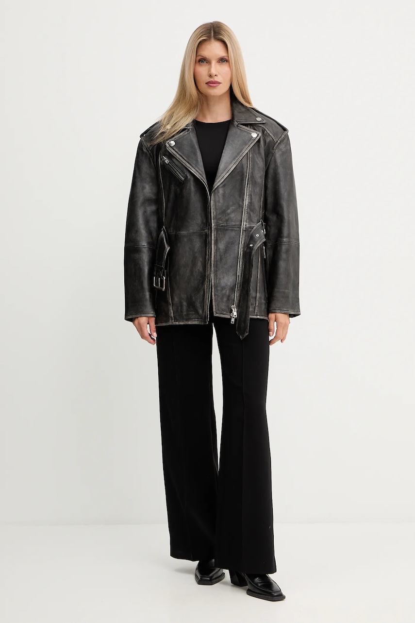 Stand Studio kurtka skórzana Leona kolor czarny przejściowa oversize 66547-7830
