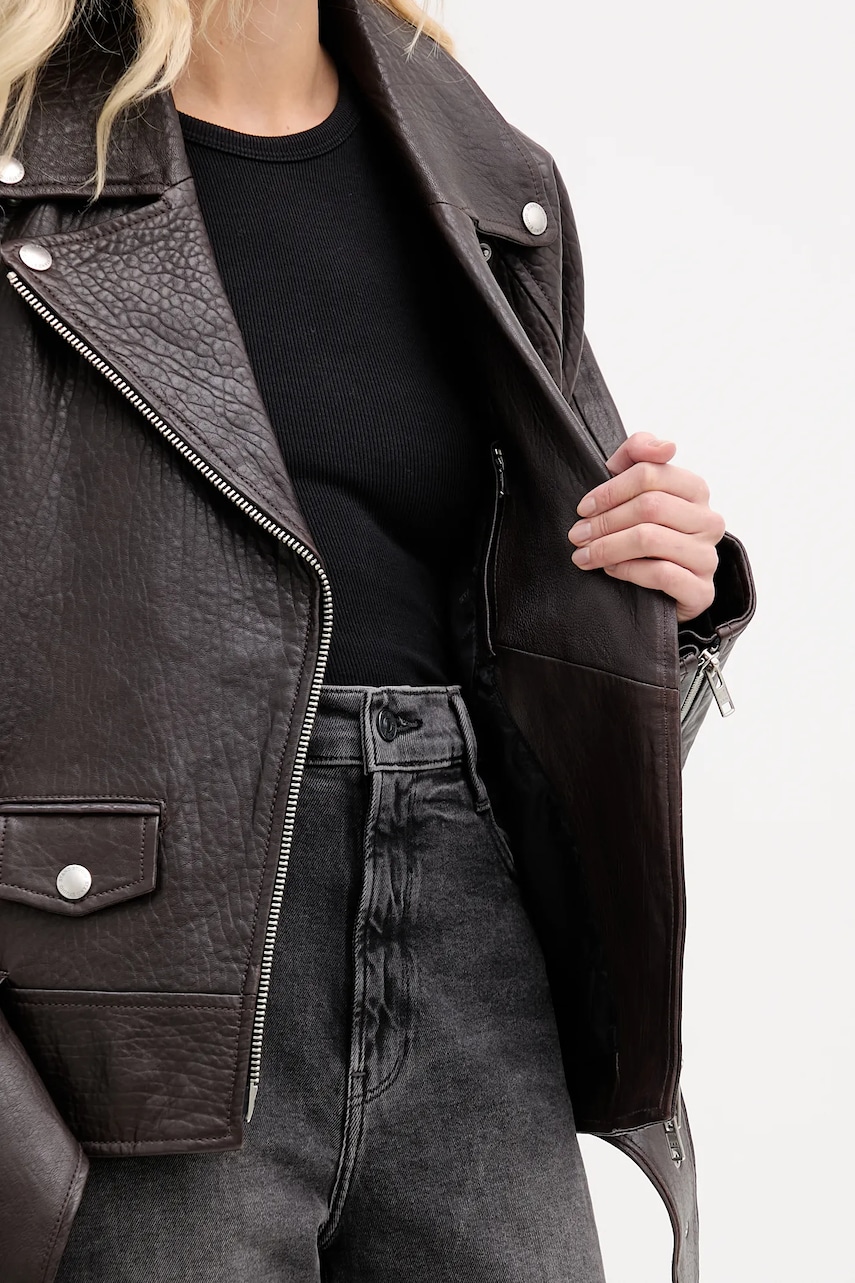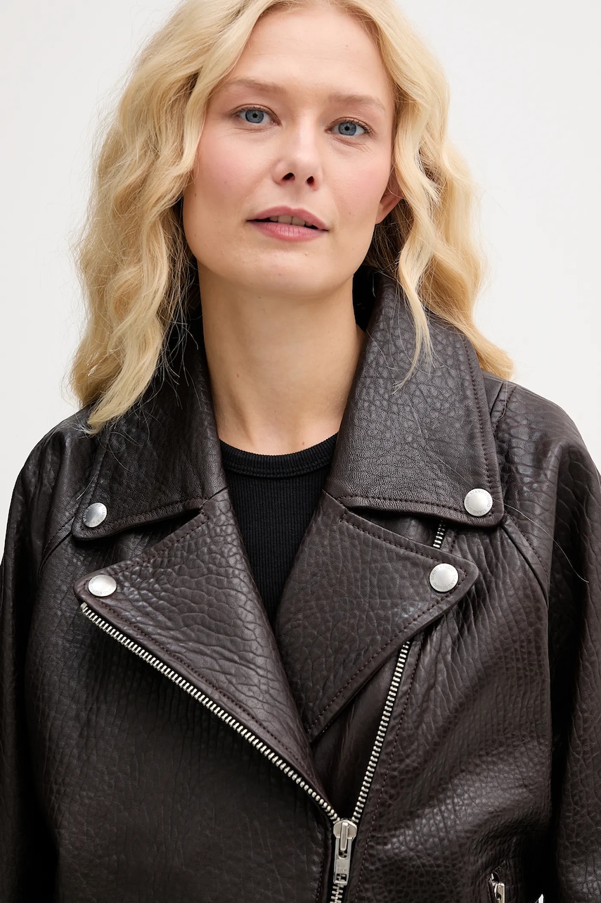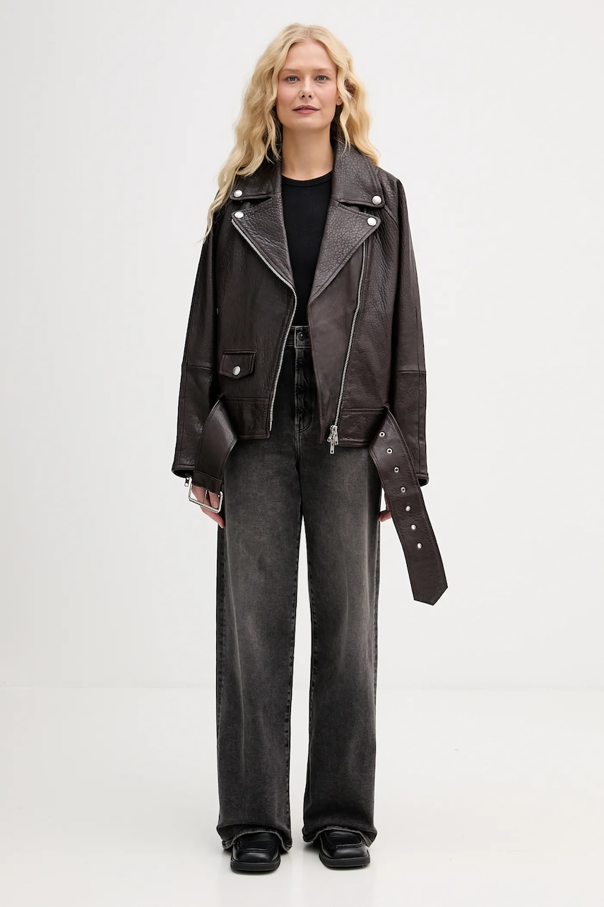 Stand Studio ramoneska skórzana Romy kolor brązowy przejściowa oversize 66617-7970