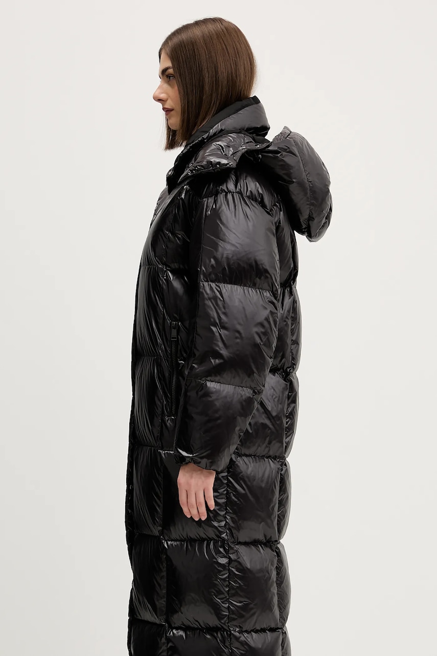 - Ten produkt został częściowo uszyty z poliamidu z recyklingu. - Model z częściowym wypełnieniem z puchu i pierza naturalnego, które pochodzą z odpowiedzialnych źródeł dbających o etyczną hodowlę ptaków. - Model z podwyższoną odpornością na wodę. - Wodoodporność oznacza podwyższoną odporność na działanie wody. Produkt w kontakcie z wodą zachowuje swoje właściwości, co pozwala na większy komfort użytkowania dzięki niższemu progowi przemakalności, nie gwarantuje jednak całkowitej wodoszczelności. - Luźny krój zapewniający pełną swobodę ruchów. - Zapięcie na całej długości na suwak wyposażony w przypinaną na zatrzaski klapkę przeciwsztormową. - Podwyższony kołnierz i odpinany kaptur gwarantują dodatkową ochronę przed chłodem. - Kaptur regulowany za pomocą troczka, zwiększa ochronę przed wiatrem i deszczem. - Krój rękawa z obniżoną linią ramion nie ogranicza mobilności. - Długie rękawy wykończone wygodnym, elastycznym ściągaczem. - Dwie wsuwane i zapinane na suwak kieszenie boczne. - Dodatkowa kieszeń wewnętrzna pozwala na bezpieczne przechowywanie drobiazgów. - Ocieplony model na podszewce. - Długość rękawa(mierzona od kaptura): 73,5 cm. - Długość: 117,5 cm. - Szerokość pod pachami: 61 cm. - Wymiary podane dla rozmiaru: S.