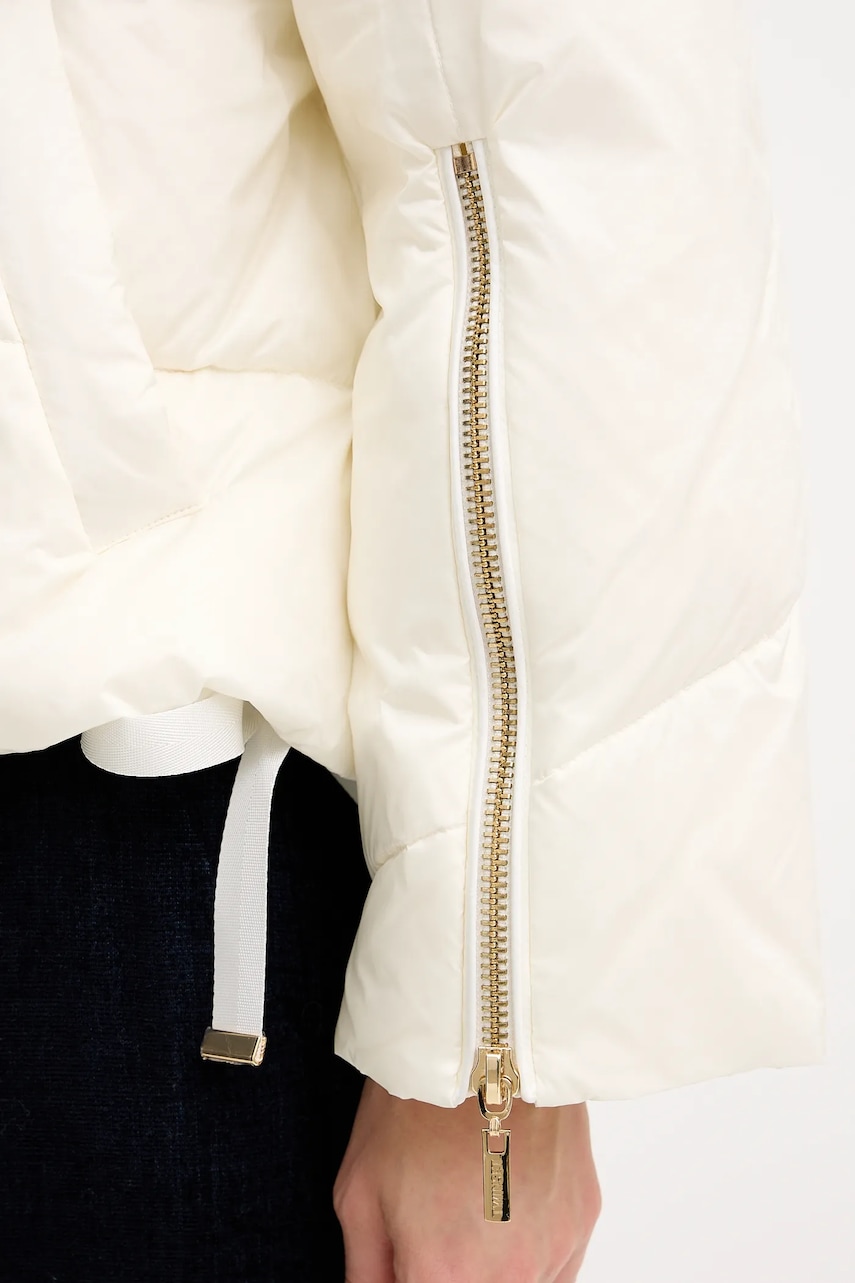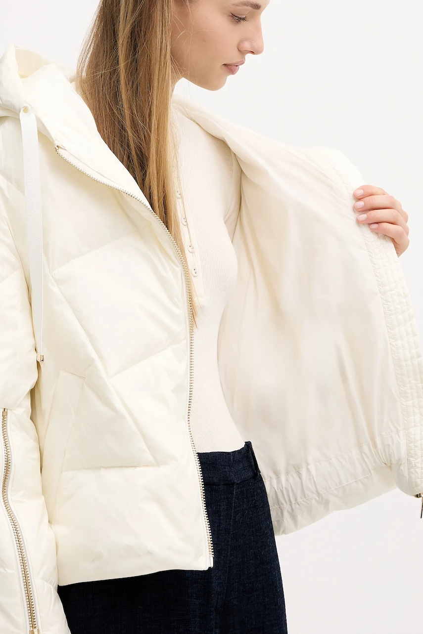 - Luźny krój zapewniający pełną swobodę ruchów. - Wypełnienie z puchu i pierza w proporcji 90/10. - Podwyższony kołnierz gwarantuje dodatkową ochronę przed chłodem. - Kaptur regulowany za pomocą troczka, zwiększa ochronę przed wiatrem i deszczem. - Krój rękawa z obniżoną linią ramion nie ogranicza mobilności. - Suwaki u dołu rękawów zapewniają wygodę podczas zakładania i zdejmowania. - Zapięcie na całej długości na suwak wyposażony w wewnętrzną klapkę przeciwsztormową. - Dwie wsuwane kieszenie boczne. - Dolna krawędź wykończona troczkami, które umożliwiają indywidualne dopasowanie. - Długość rękawa(mierzona od kaptura): 74 cm. - Długość: 64 cm. - Szerokość pod pachami: 65 cm. - Wymiary podane dla rozmiaru: 36.