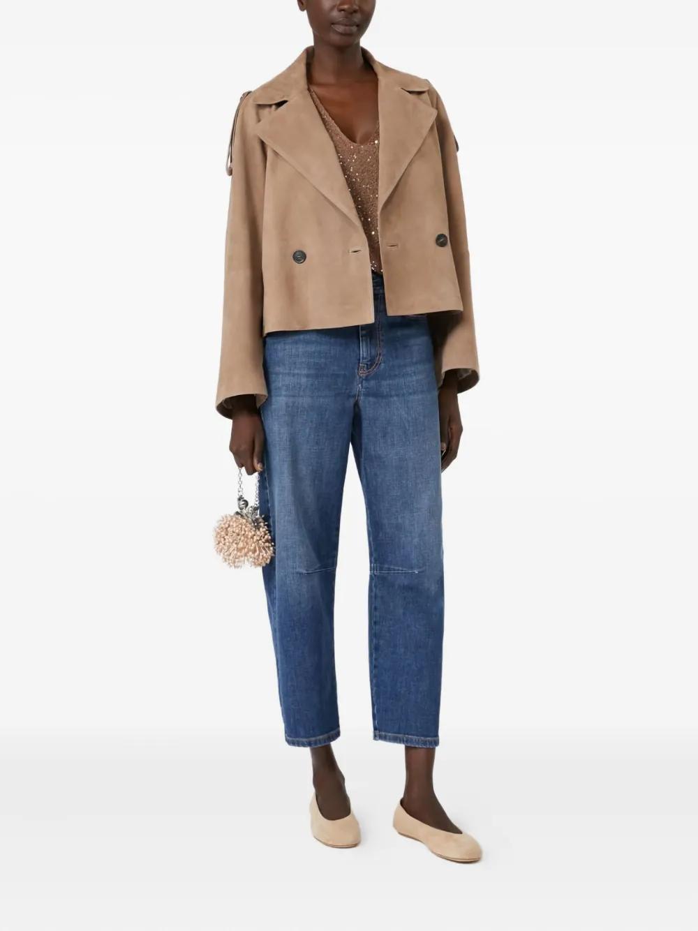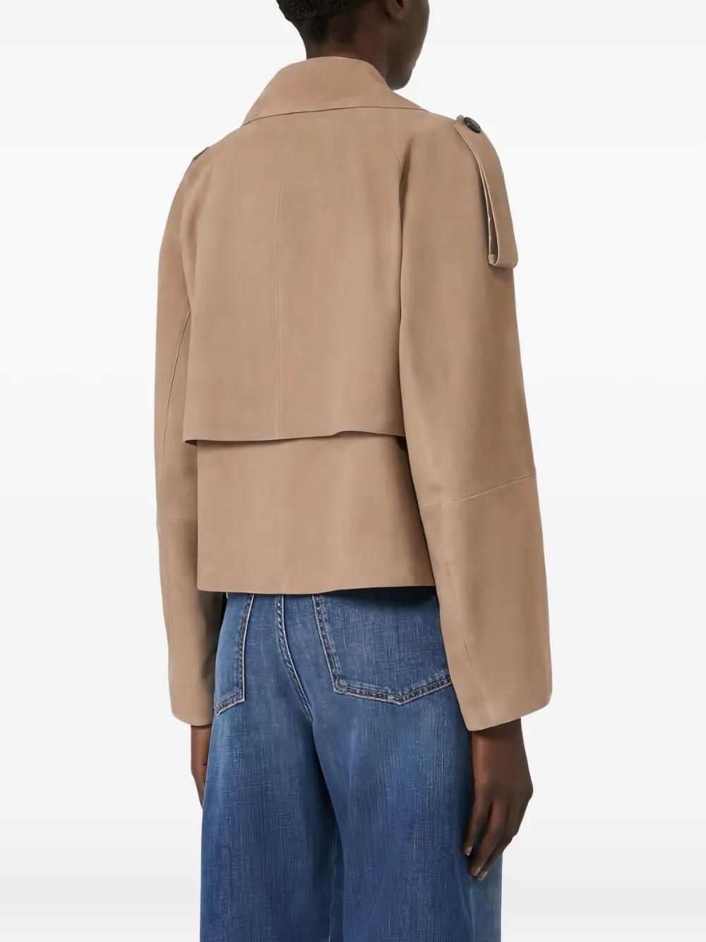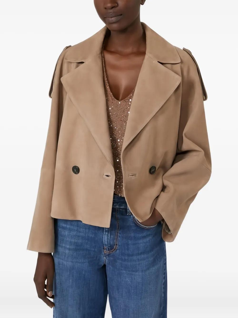 brown suede leather double-breasted closure wide sleeves cropped hem