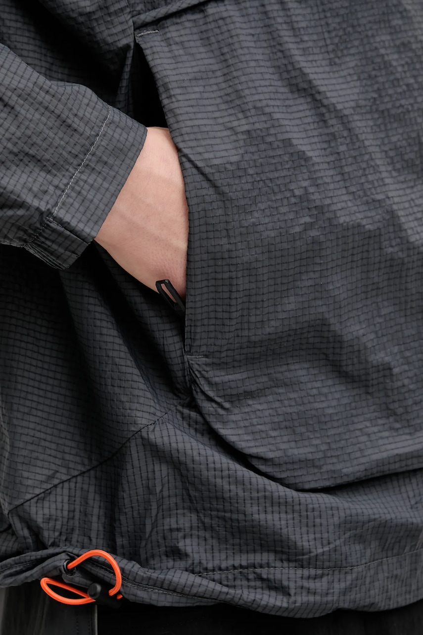 - Produkt zawiera materiały z włókien pochodzących z recyklingu. - Model wykonany ze wzmacnianej tkaniny ripstop, odpornej na uszkodzenia mechaniczne. - Materiał chroniący przed słońcem, posiadający ochronę przeciwsłoneczną na poziomie UPF 50+. - Z przodu praktyczna, zapinana na suwak kieszeń typu kangurka. - Podwyższony kołnierz gwarantuje dodatkową ochronę przed chłodem. - Zapięcie na krótki suwak ułatwia sprawną wentylację oraz swobodne ubieranie i ściąganie. - Wbudowany kaptur zapewnia dodatkowe ciepło i osłonę, gdy jest to potrzebne. - Dolna krawędź wykończona troczkami ze stoperami, które dzięki możliwości regulacji obwodu dołu, zwiększają izolację od zimna. - Długość: 64 cm. - Szerokość pod pachami: 57 cm. - Wymiary podane dla rozmiaru: S.
