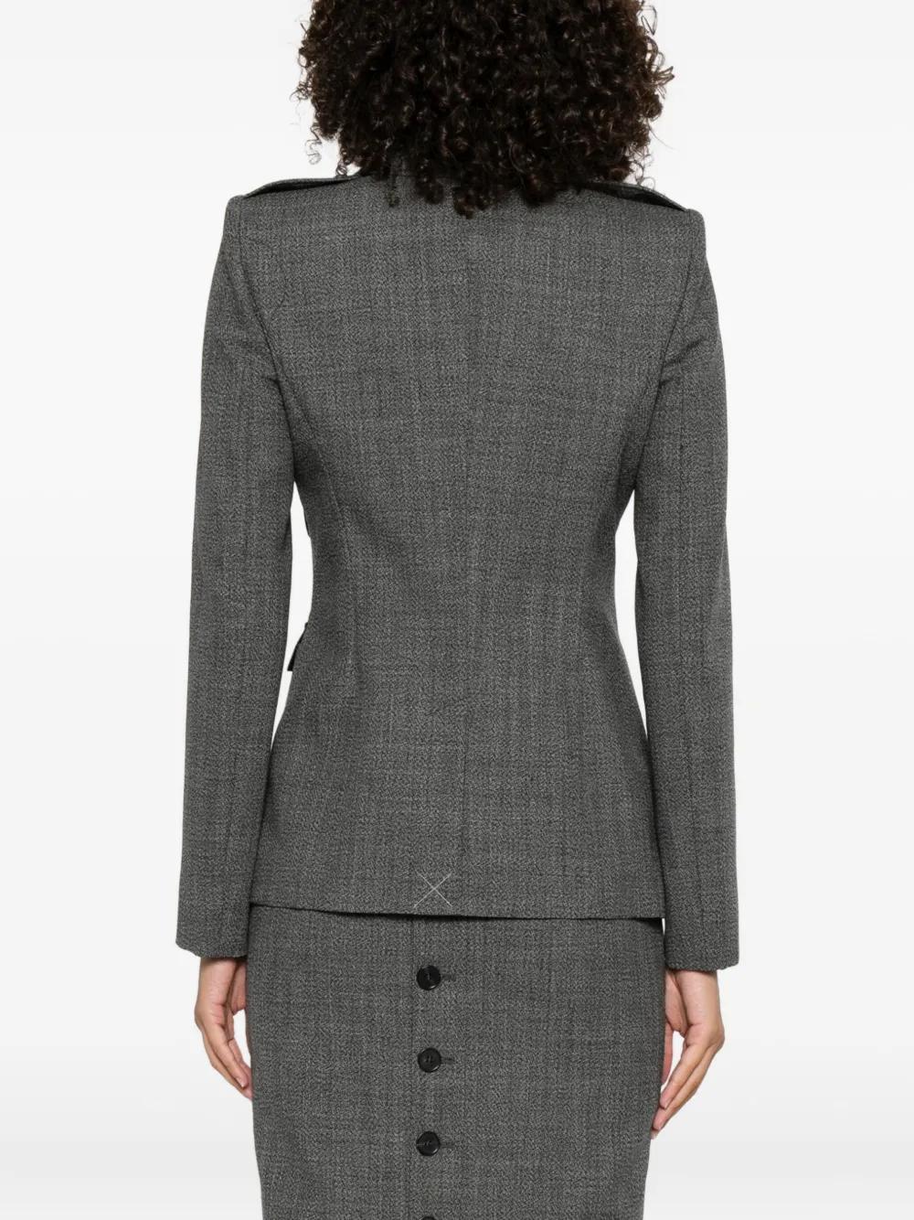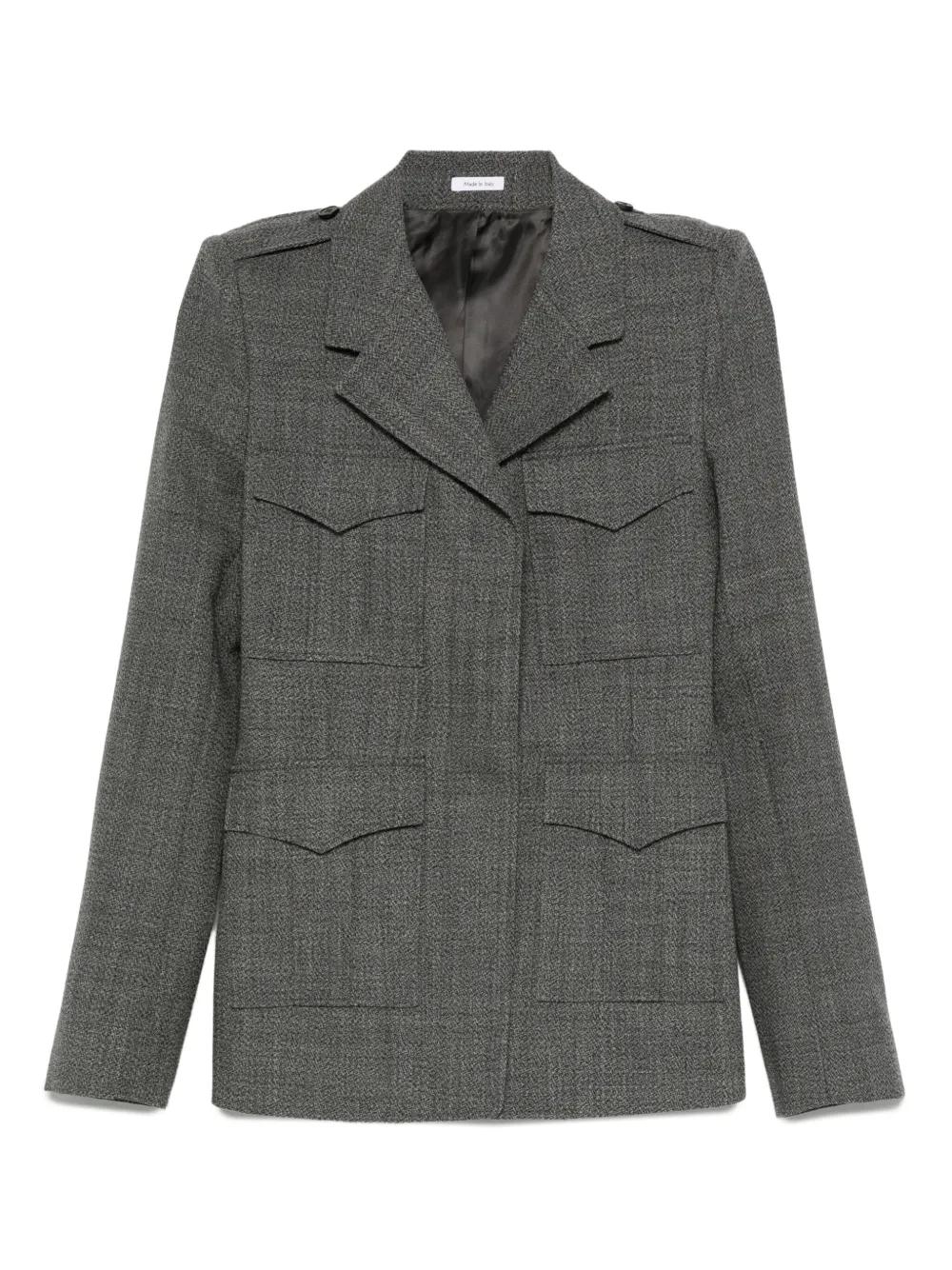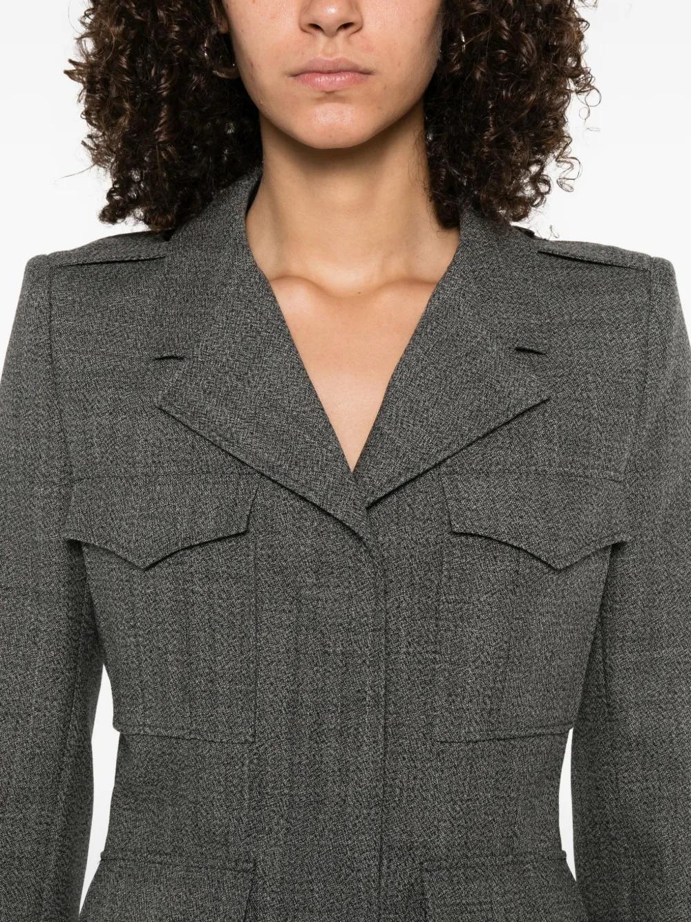 grey concealed front fastening front flap pockets notched lapels long sleeves