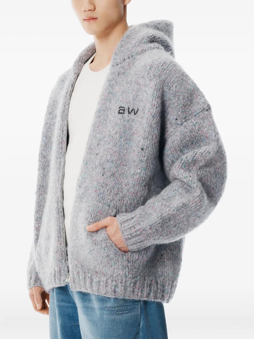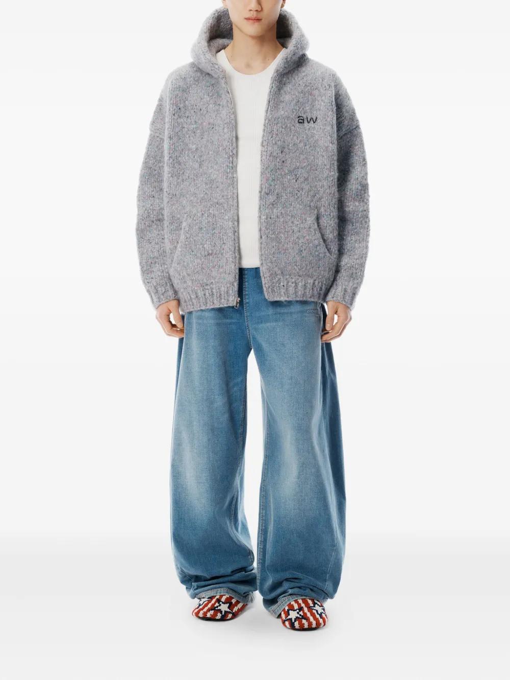 light grey front zip-fastening kangaroo pocket dropped shoulder embroidered AW logo