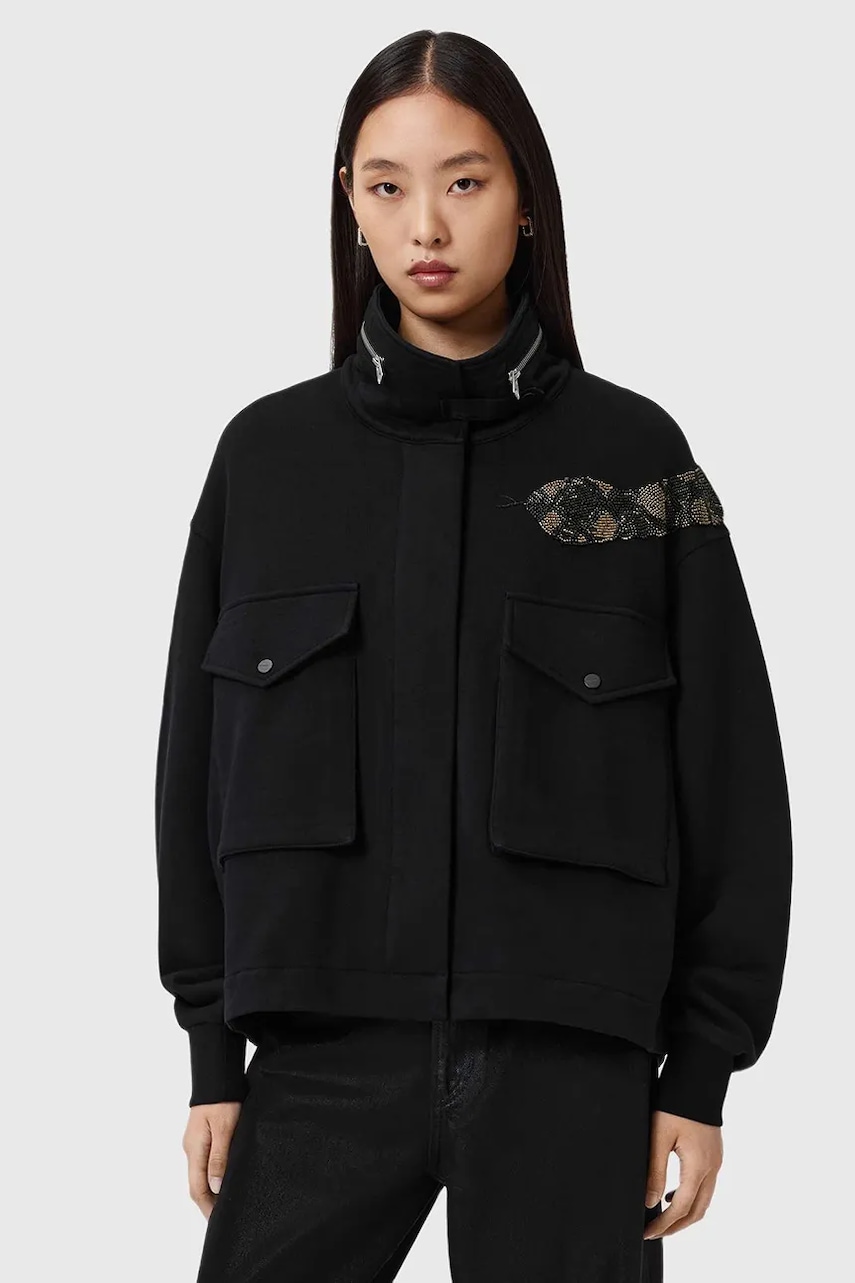 AllSaints kurtka bawełniana kolor czarny przejściowa W151JD