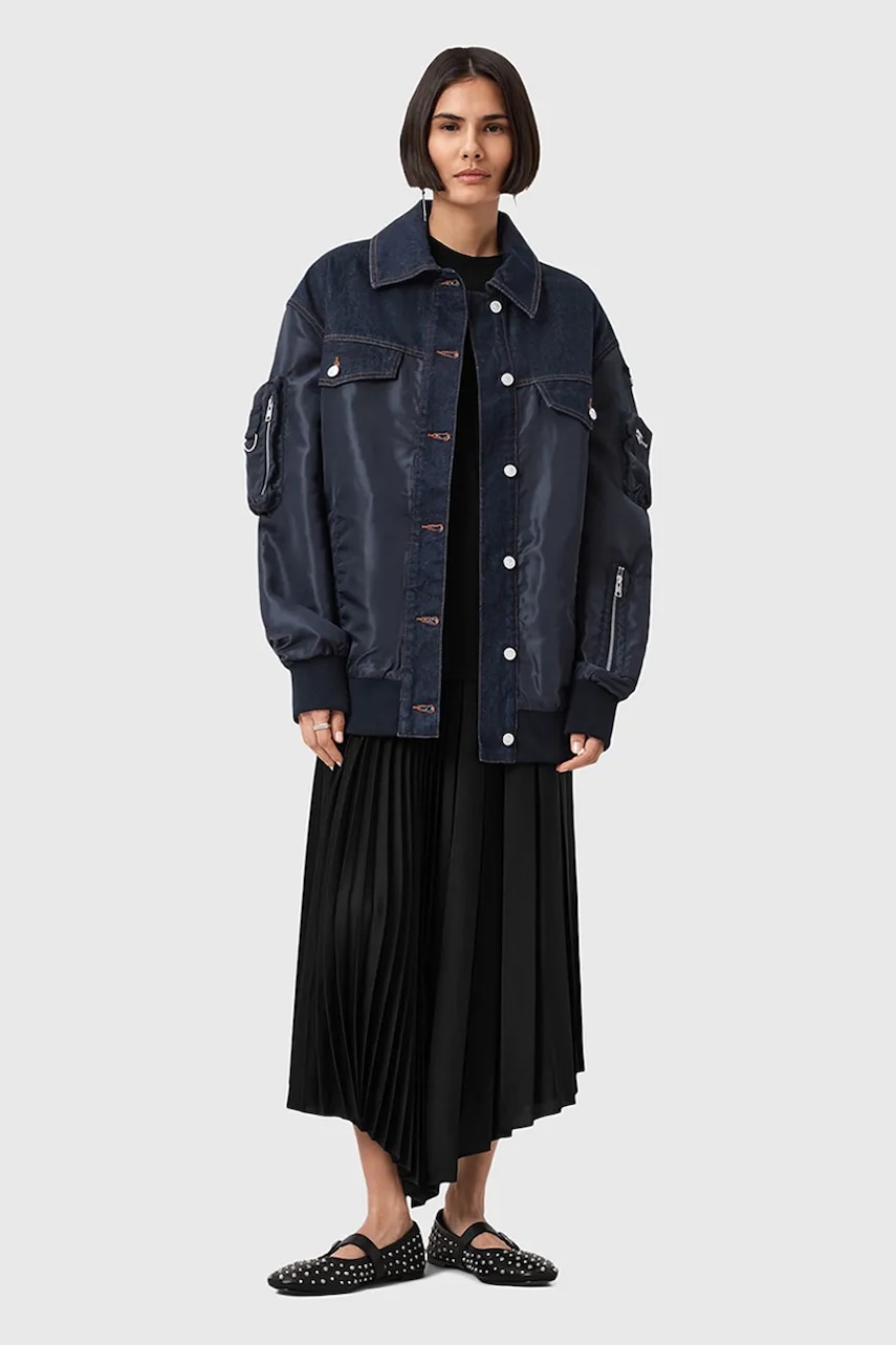 AllSaints kurtka bomber VERITY kolor granatowy przejściowa oversize W024OD