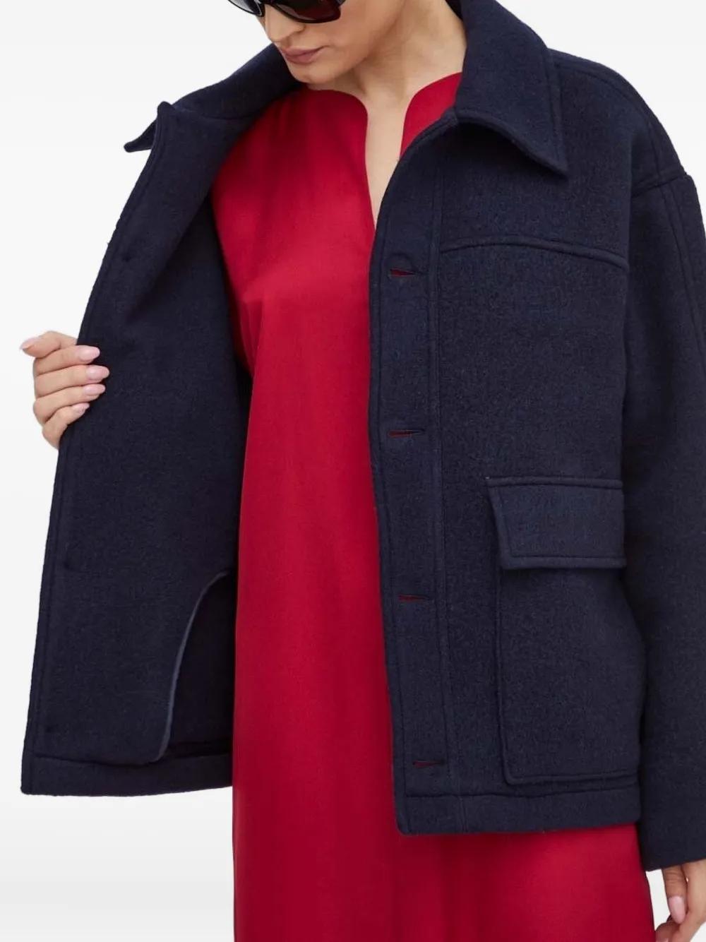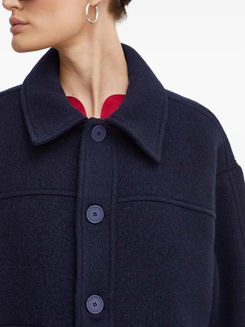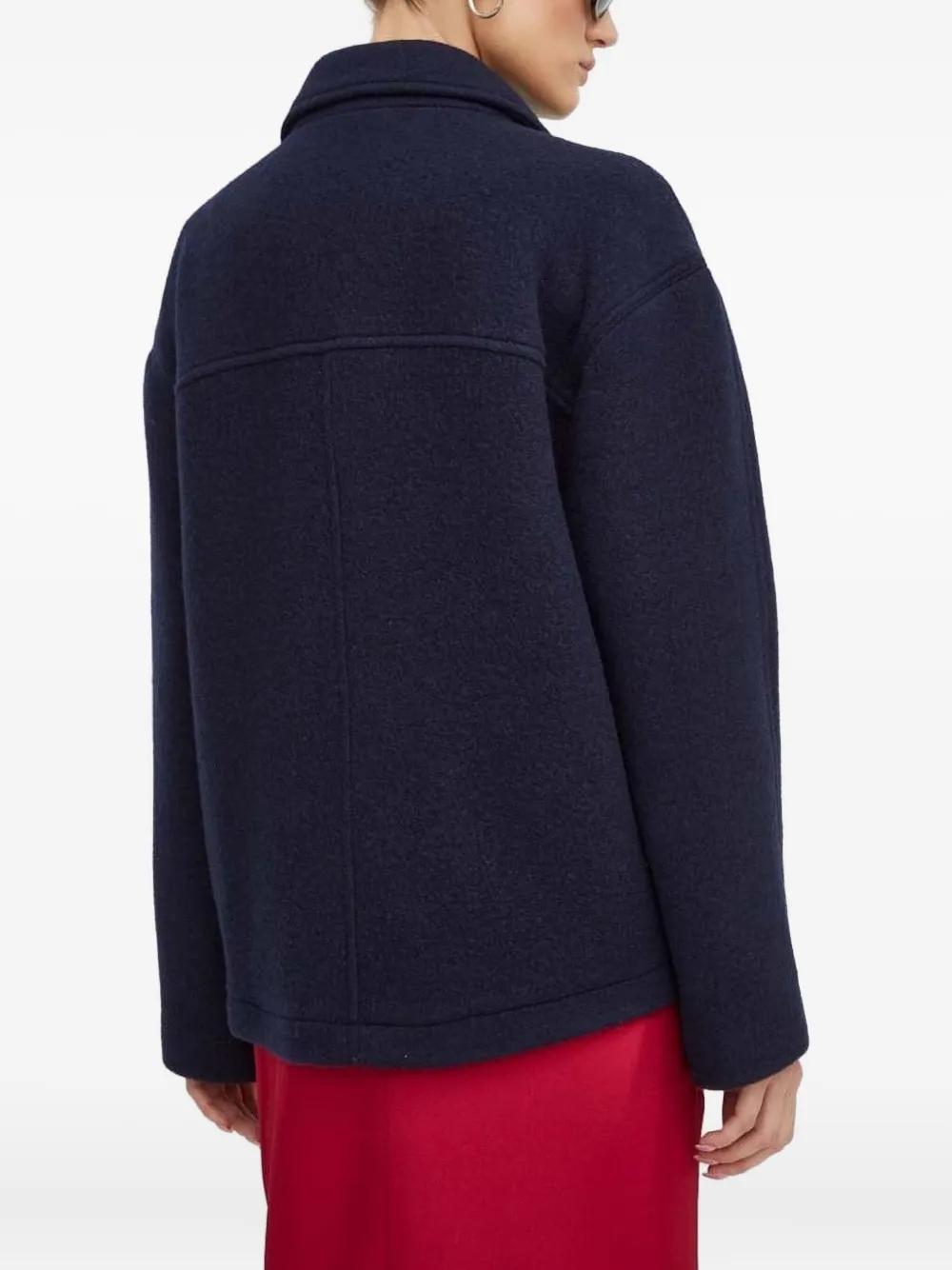navy blue wool-blend texture button fastening patch pocket collared neckline