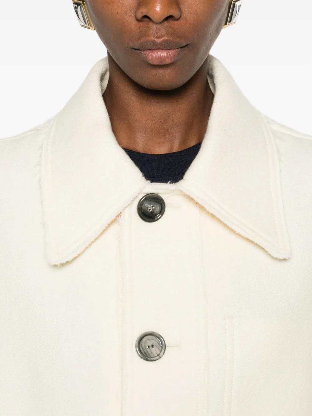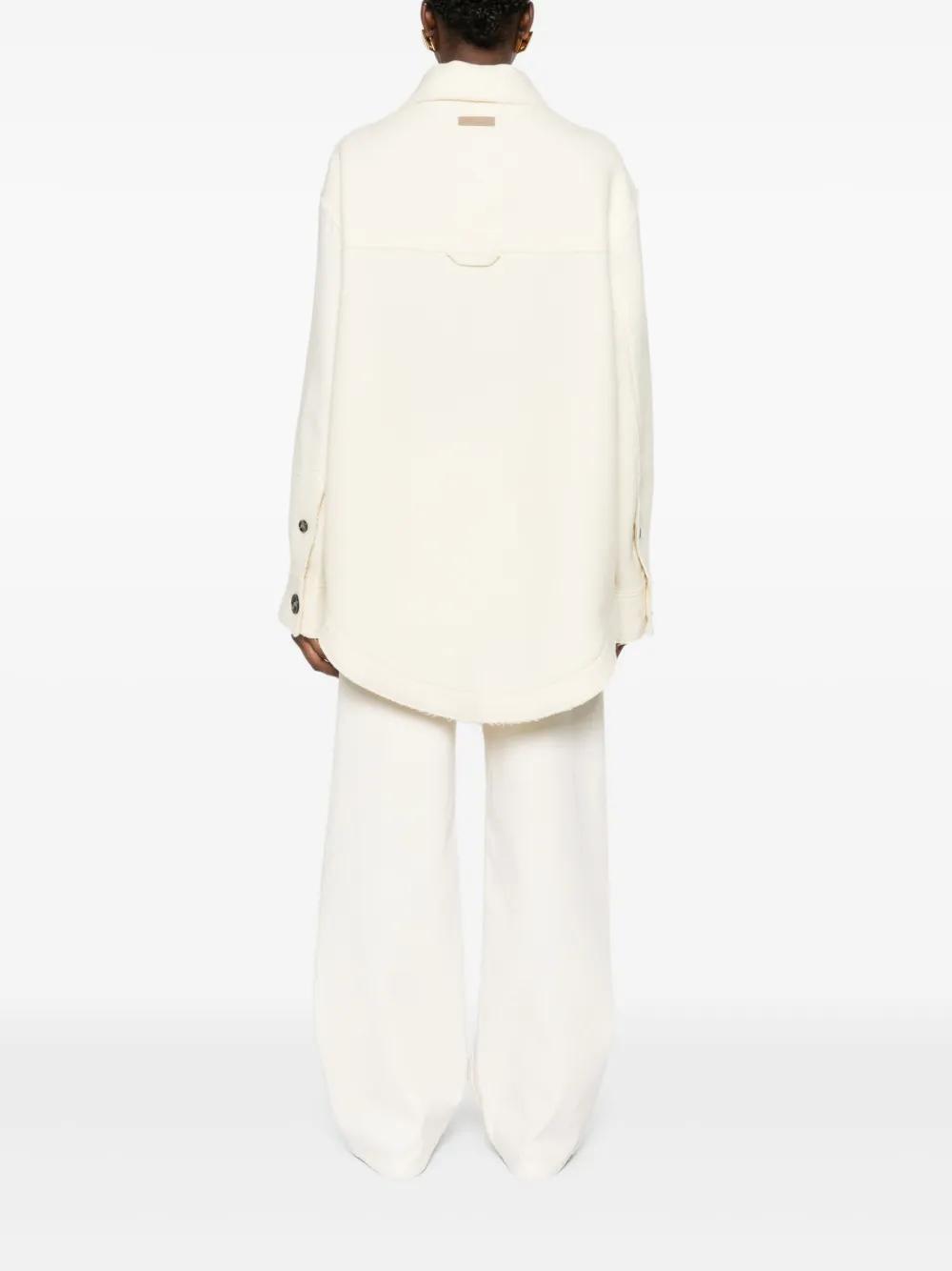 cream button fastening chest pocket frayed hem classic collar long sleeves