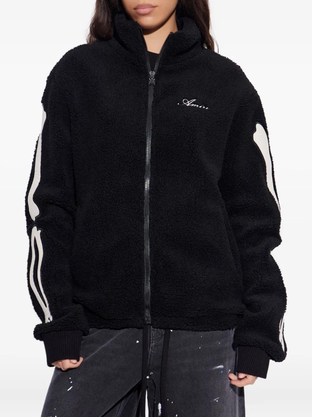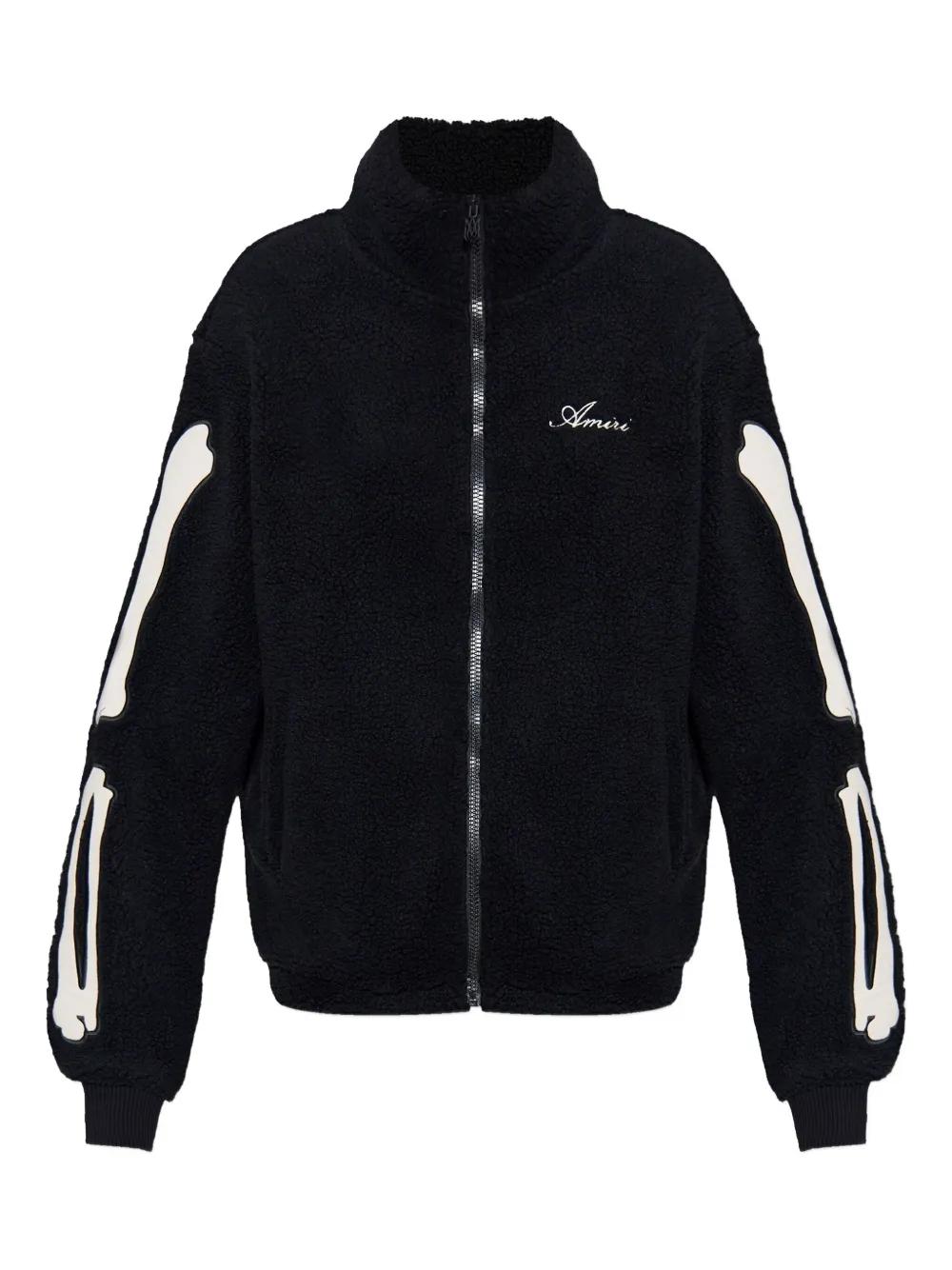 black bones detail embroidered logo zip fastening high neck ribbed cuffs elasticated hem