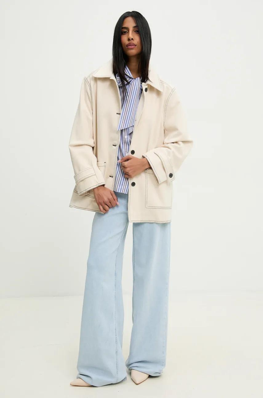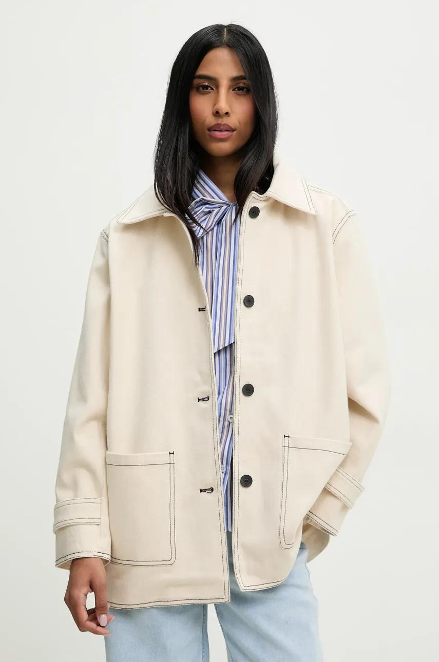 Answear.LAB kurtka koszulowa bawełniana kolor beżowy przejściowa