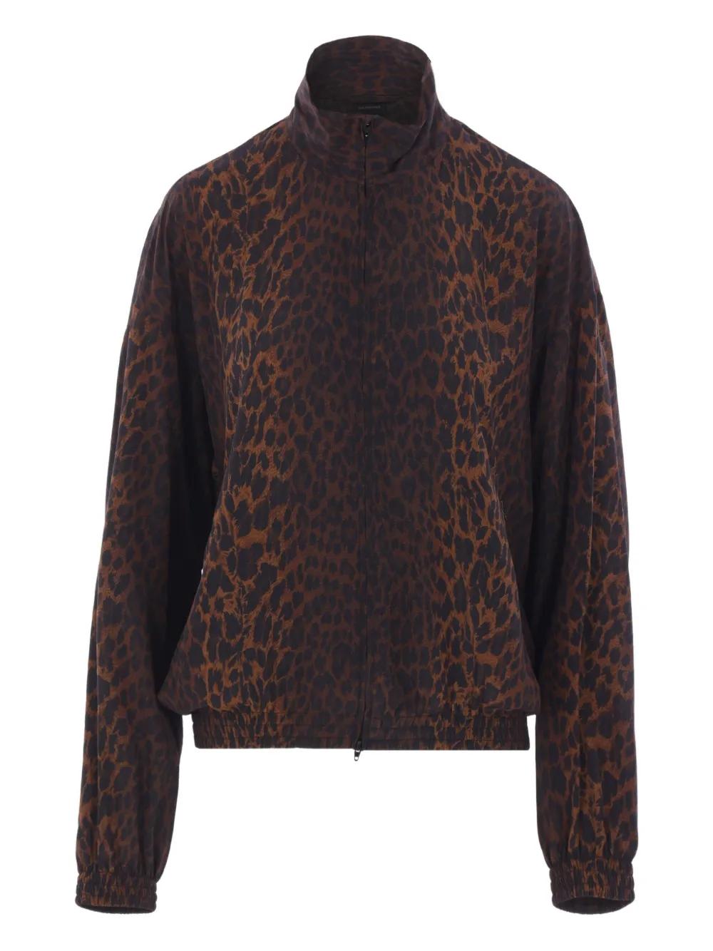 brown leopard print zip fastening high neck long sleeves elasticated cuffs elasticated hem