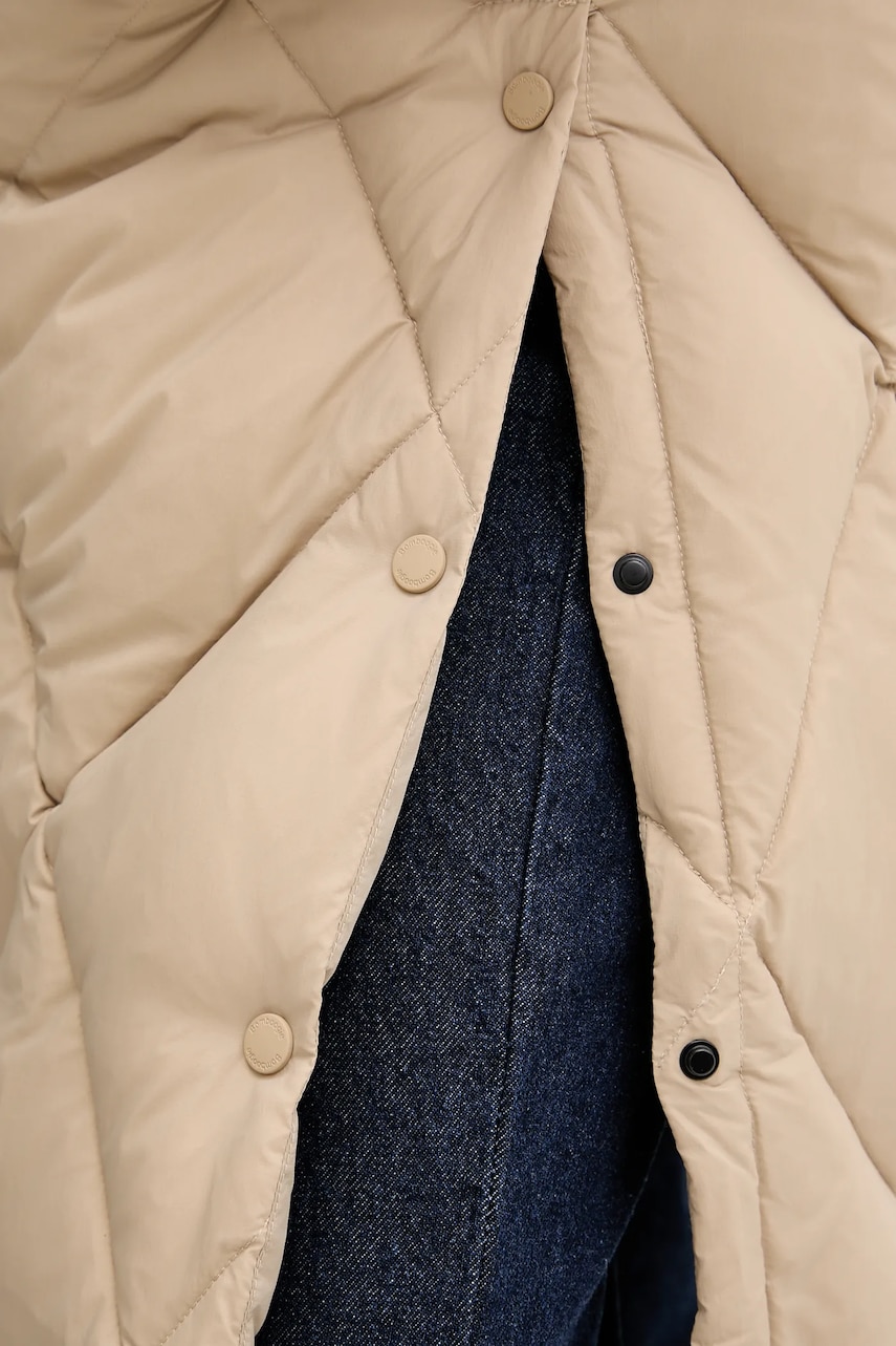 - Model wodoodporny i wiatroodporny. - Prosty, nie blokujący ruchów fason. - Zapięcie na dwustronny suwak i zatrzaski. - Model z kapturem. - Dwie wsuwane kieszenie boczne. - Ocieplony model na podszewce. - Wypełnienie z naturalnego puchu i pierza. - Wsuwane kieszenie wewnętrzne. - Boczne zapięcie na zatrzaski. - Długość rękawa: 53 cm. - Długość: 99 cm. - Szerokość pod pachami: 52 cm. - Szerokość w ramionach: 46 cm. - Wymiary podane dla rozmiaru: S.
