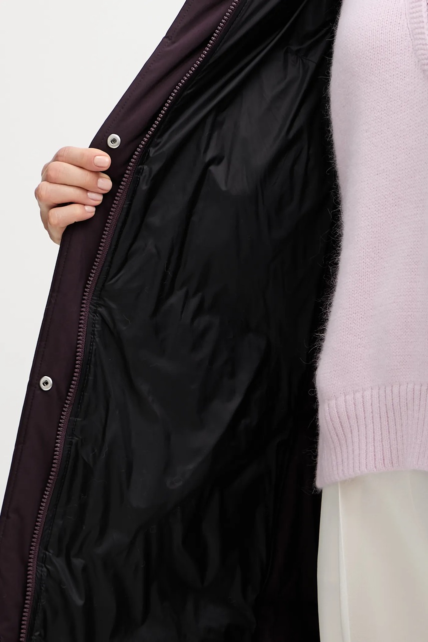 - Produkt zawiera materiały z włókien pochodzących z recyklingu. - Model z podwyższoną odpornością na wodę. - Prosty, nie blokujący ruchów fason. - Zapięcie na suwak i zatrzaski. - Zapinane kieszenie zewnętrzne. - Podwyższony kołnierz i odpinany kaptur gwarantują dodatkową ochronę przed chłodem. - Pikowany model. - Długość rękawa: 64 cm. - Długość: 124 cm. - Szerokość pod pachami: 49 cm. - Szerokość w ramionach: 42 cm. - Wymiary podane dla rozmiaru: 36.