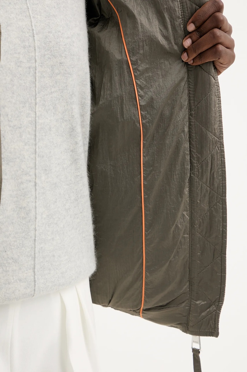 - Ocieplony model na podszewce. - Zapięcie na suwak. - Dwie wsuwane i zapinane na zatrzask kieszenie boczne. - Rękawy i dolna krawędź wykończone elastyczną gumką. - Długość rękawa: 59 cm. - Długość: 60 cm. - Szerokość pod pachami: 59 cm. - Szerokość w ramionach: 50 cm. - Wymiary podane dla rozmiaru: 36.