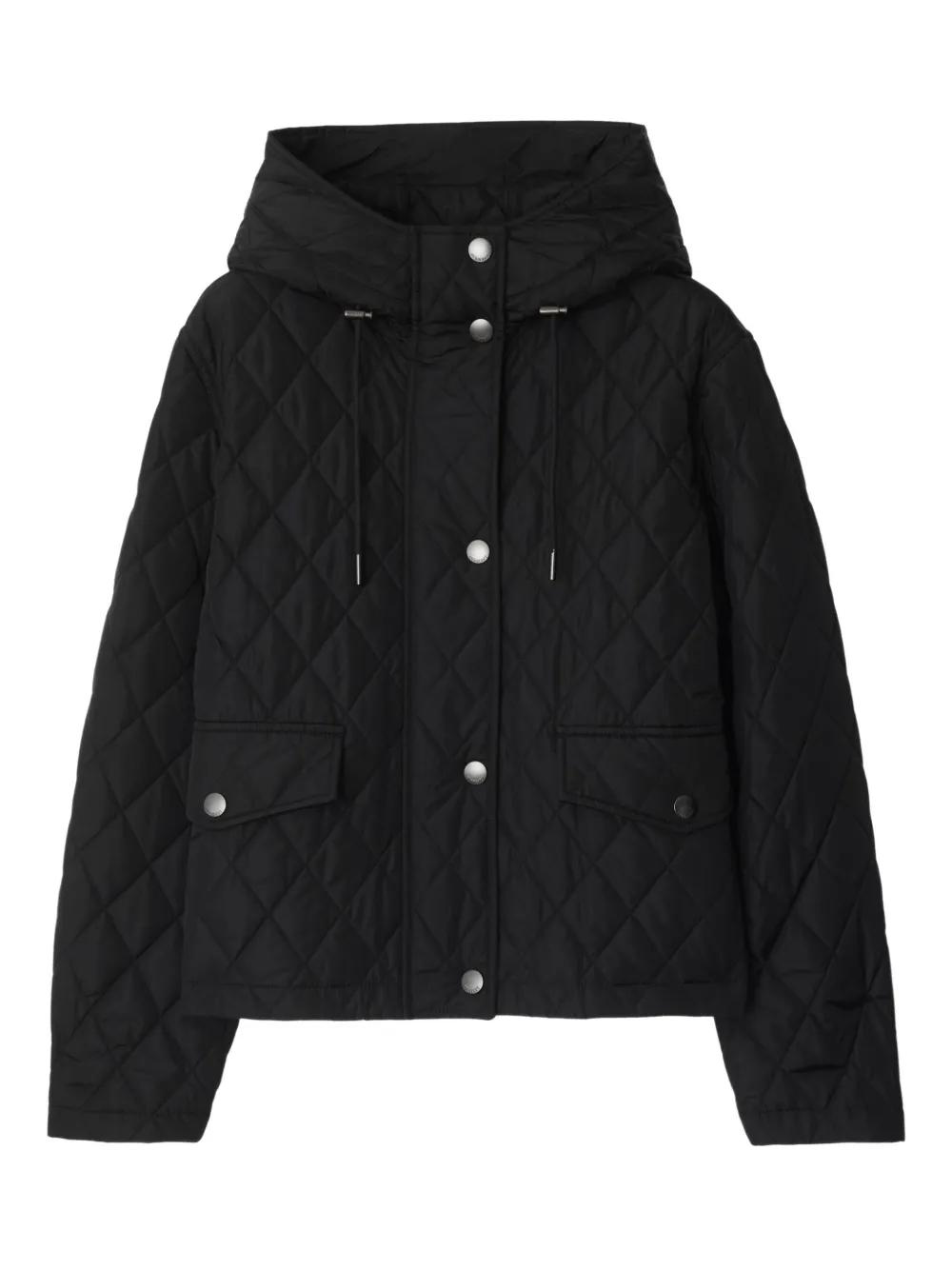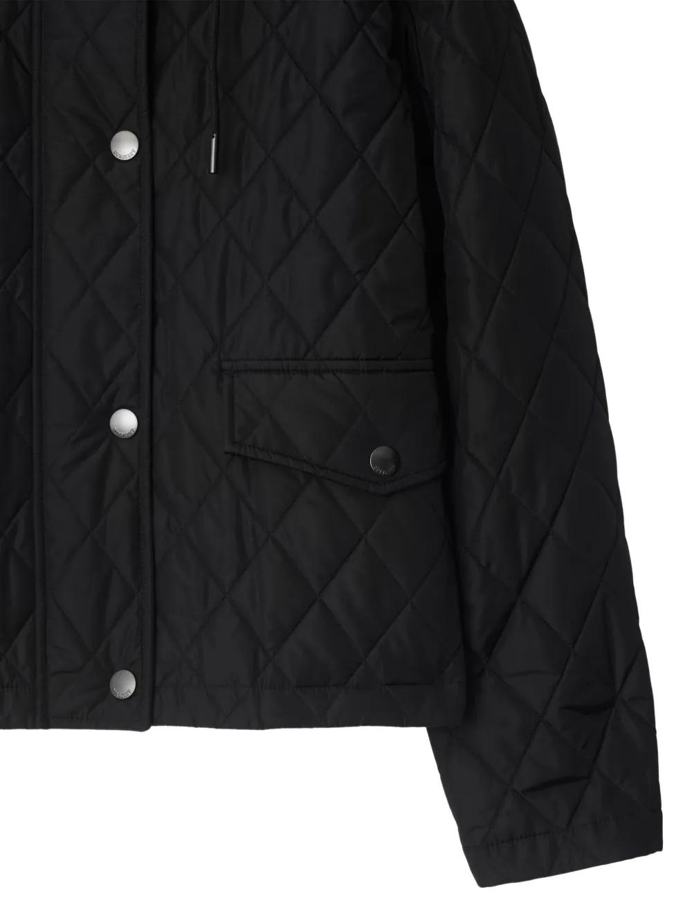 black front press-stud fastening two front flap pockets long sleeves straight hem