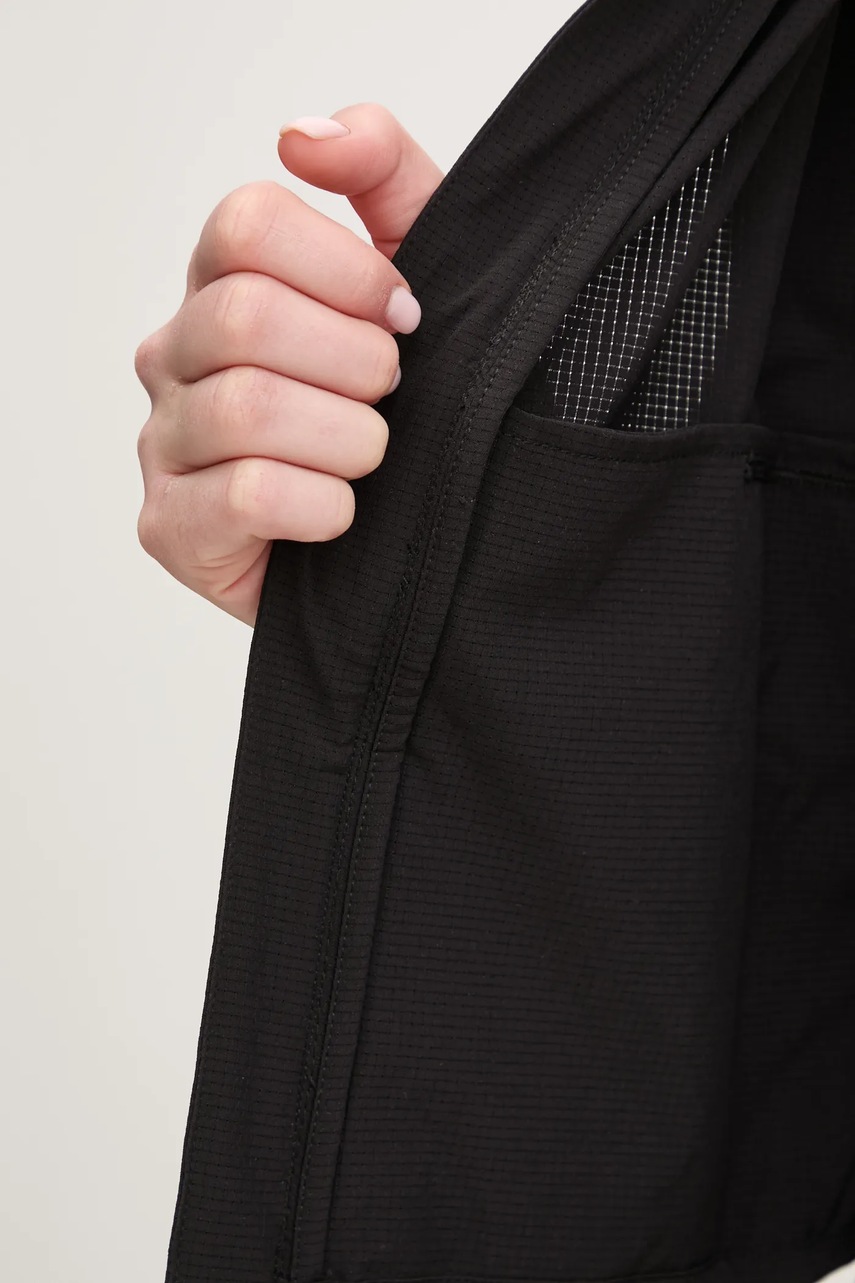 - Produkt zawiera materiały z włókien pochodzących z recyklingu. - Model wykonany z szybkoschnącego materiału, który doskonale pochłania wilgoć z powierzchni skóry, pomagając zachować długotrwały komfort w trakcie aktywności. - Podwyższony kołnierz gwarantuje dodatkową ochronę przed chłodem. - Wygodne zapięcie na suwak ułatwia zakładanie i zdejmowanie. - Dolna krawędź wykończona troczkami, które umożliwiają indywidualne dopasowanie. - Szerokość pod pachami: 47 cm. - Długość: 52 cm. - Wymiary podane dla rozmiaru: S.