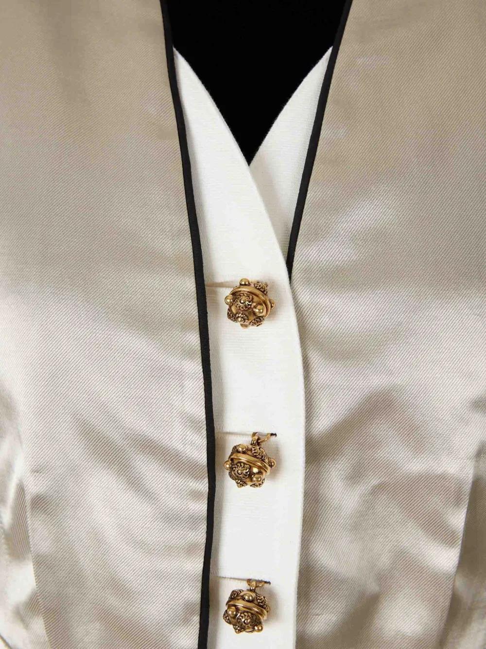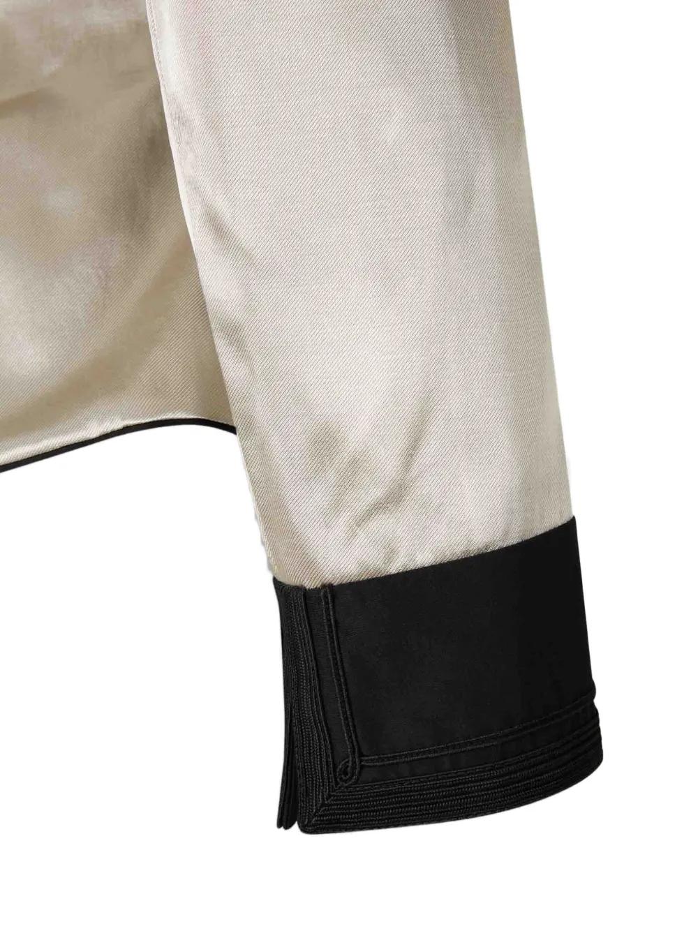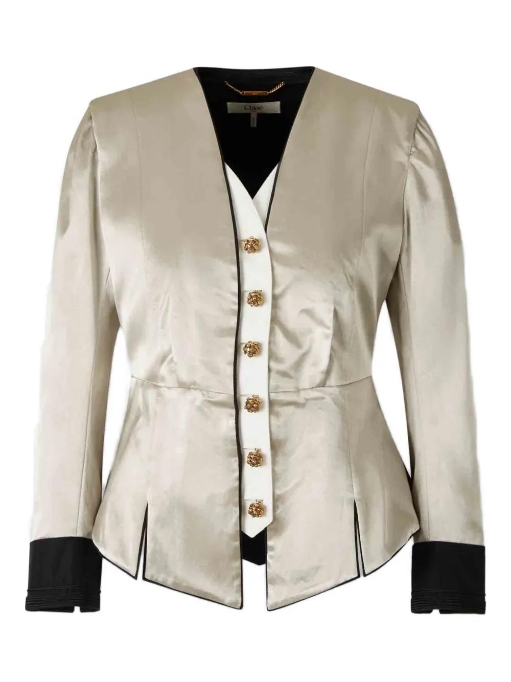 silver cloud button fastening peak lapels long sleeves pleated hem trimmed cuffs