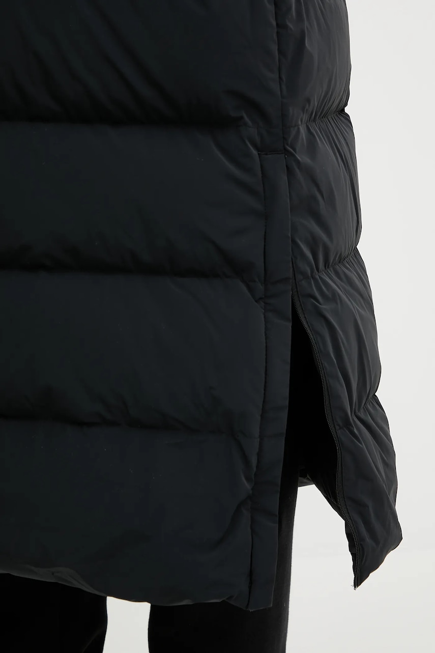 - Dzięki technologii Omni-Shield® odzież schnie od 3 do 5 razy szybciej. Jest ona także barierą zarówno dla wody, jak i dla zanieczyszczeń. Materiały z tą technologią powleczone zostały warstwą odporną na działanie czynników zewnętrznych aż do temperatury 76 st.C. Warstwa ta zabezpiecza również przed niepożądanym zabarwieniem tkaniny. - Model ocieplony naturalnym puchem i pierzem, które pochodzą z odpowiedzialnych źródeł. - Fason regular. - Zapięcie na całej długości na suwak wyposażony w wewnętrzną i zewnętrzną klapkę przeciwsztormową. - Podwyższony kołnierz i odpinany kaptur gwarantują dodatkową ochronę przed chłodem. - Kaptur ściągany troczkami. - Szelki wewnętrzne. - W pasie troczki. - Suwaki po bokach kurtki. - Dwie wsuwane i zapinane na suwak kieszenie boczne. - Wnętrze kieszeni wyściełane polarem, który zwiększa ochronę przed zimnem. - Kieszeń wewnętrzna zapinana na suwak pozwala na bezpieczne przechowywanie drobiazgów. - Ocieplony model na podszewce. - Długie rękawy wykończone wygodnym, elastycznym ściągaczem. - Długość rękawa: 67 cm. - Długość: 120 cm. - Szerokość pod pachami: 52 cm. - Wymiary podane dla rozmiaru: M.