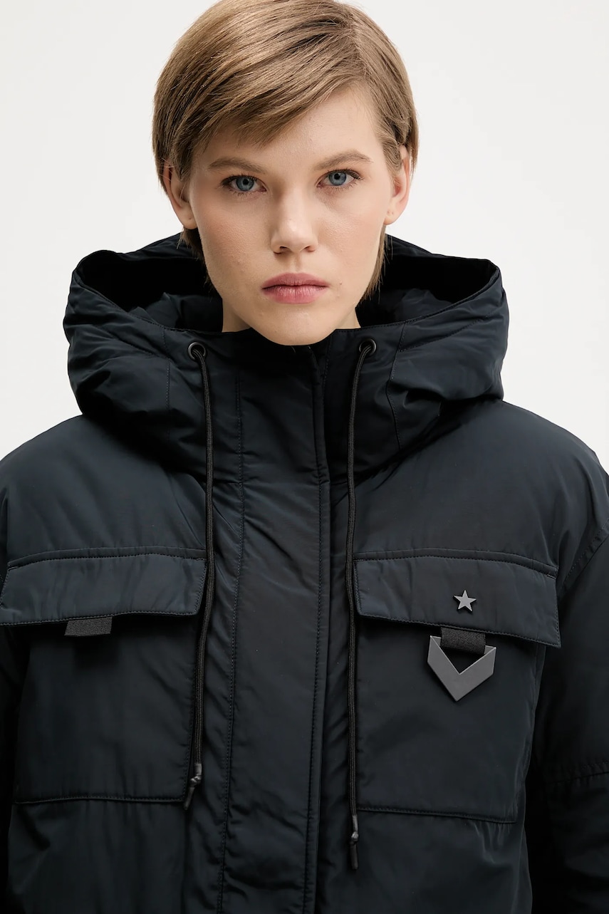 - Hydrofobowe wykończenie materiału wierzchniego nie pozwala dostać się wilgoci do wewnątrz, dzięki czemu dobrze chroni przed niekorzystnymi warunkami atmosferycznymi. - Wodoodporność oznacza podwyższoną odporność na działanie wody. Produkt w kontakcie z wodą zachowuje swoje właściwości, co pozwala na większy komfort użytkowania dzięki niższemu progowi przemakalności, nie gwarantuje jednak całkowitej wodoszczelności. - Prosty, nie blokujący ruchów fason. - Podwyższony kołnierz i nieodpinany kaptur gwarantują dodatkową ochronę przed chłodem. - Kaptur regulowany za pomocą troczka, zwiększa ochronę przed wiatrem i deszczem. - W pasie regulacja za pomocą troczków, która zapewnia indywidualne dopasowanie do sylwetki. - Dolne krawędzie rękawów wykończone ściągaczem i dodatkową regulacją na rzepy, wspomagają ochronę przed zimnem i wilgocią. - Zapięcie na suwak, zatrzaski i rzep. - Dolna krawędź wykończona troczkami, które umożliwiają indywidualne dopasowanie. - Paski wewnątrz kurtki pozwalają na szybkie ściągnięcie i noszenie kurtki na plecach. - Rozbudowany system kieszeni ułatwia bezpieczne przechowywanie drobiazgów. - Długość rękawa: 63 cm. - Długość: 77 cm. - Szerokość pod pachami: 60 cm. - Szerokość w ramionach: 51 cm. - Wymiary podane dla rozmiaru: S.
