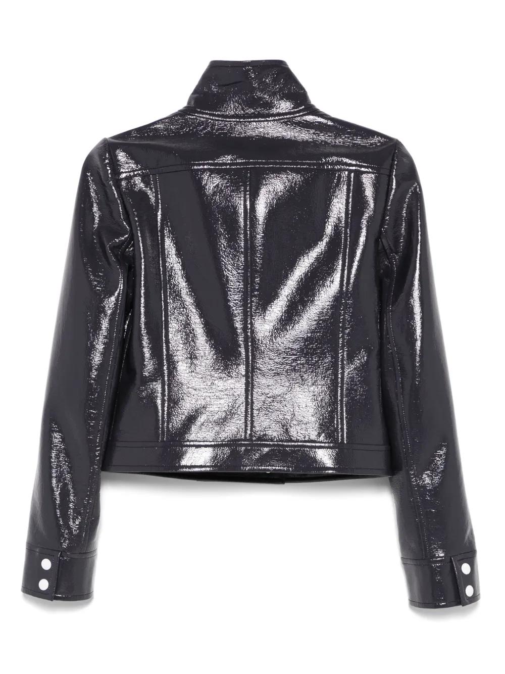 navy blue front press-stud fastening stand-up collar two press-stud fastening side pockets press-stud fastening cuffs