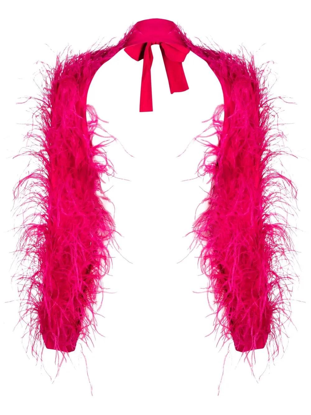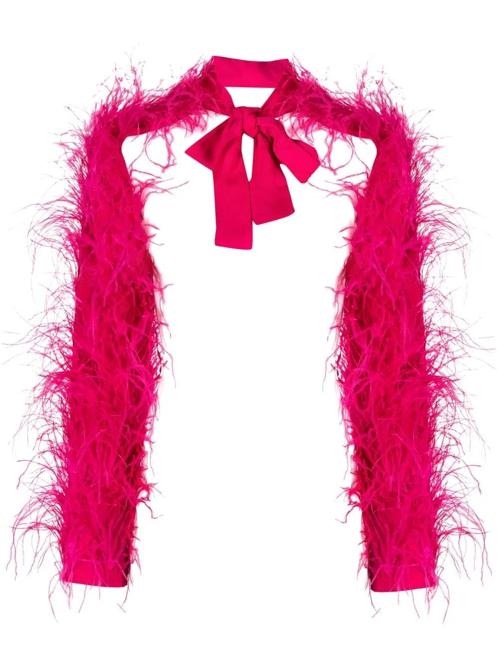 fuchsia pink ostrich feather open front open back long sleeves self-tie fastening