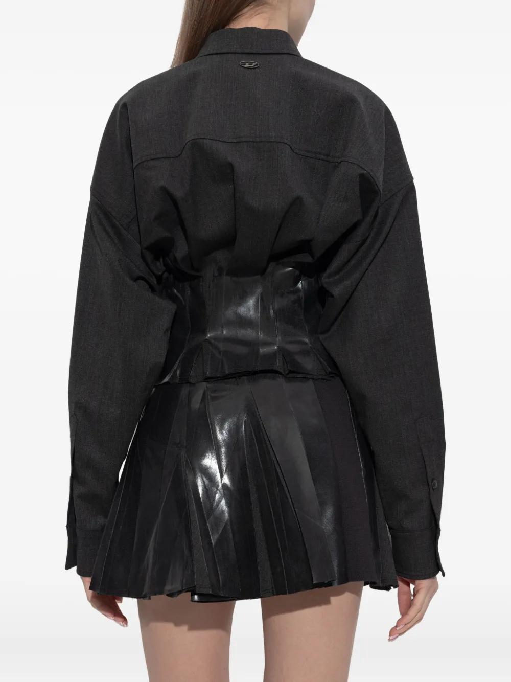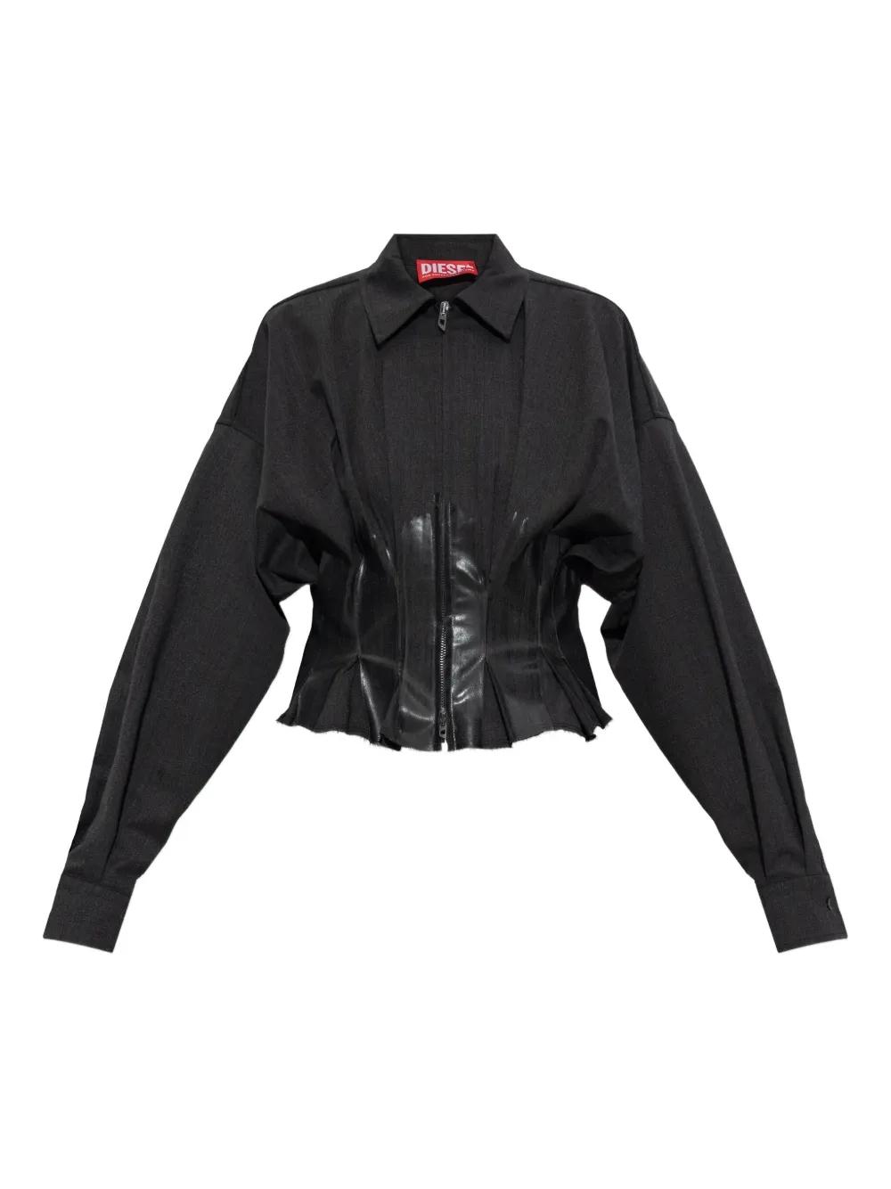 black pleated detail two-way zip fastening ribbed knit inserts shirt silhouette long sleeves