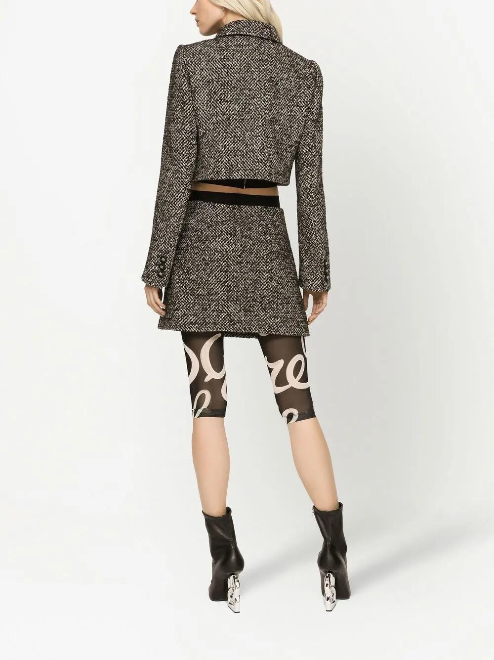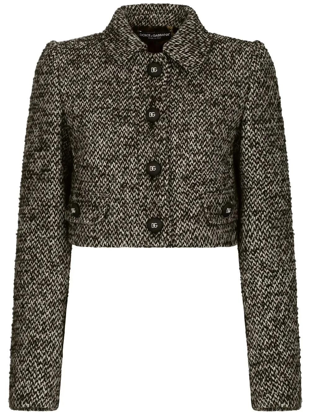 brown wool blend tweed classic collar embossed gold-tone buttons front button fastening long sleeves cropped straight hem