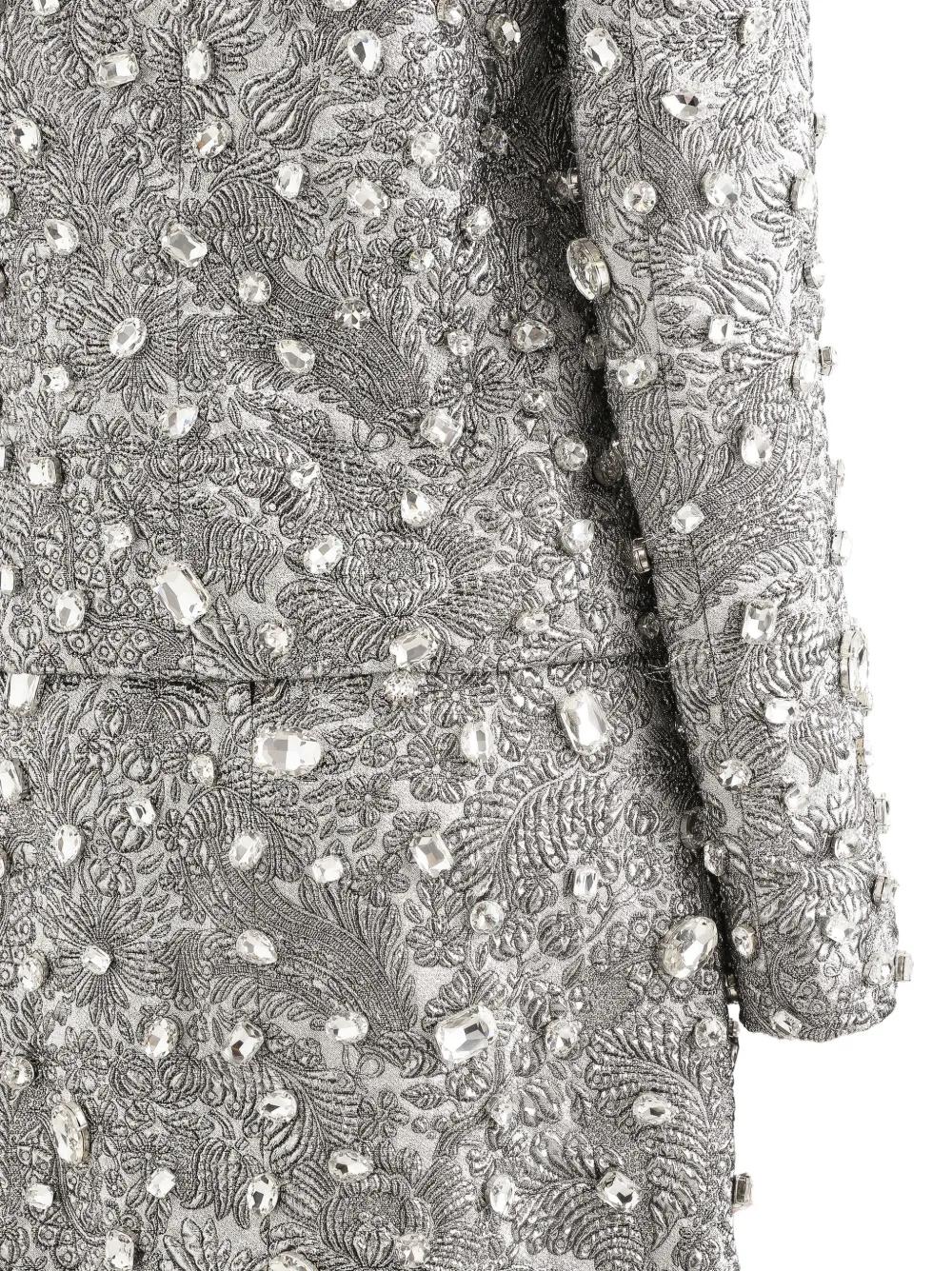 silver-tone crystal embellished single-breasted button fastening flap pockets