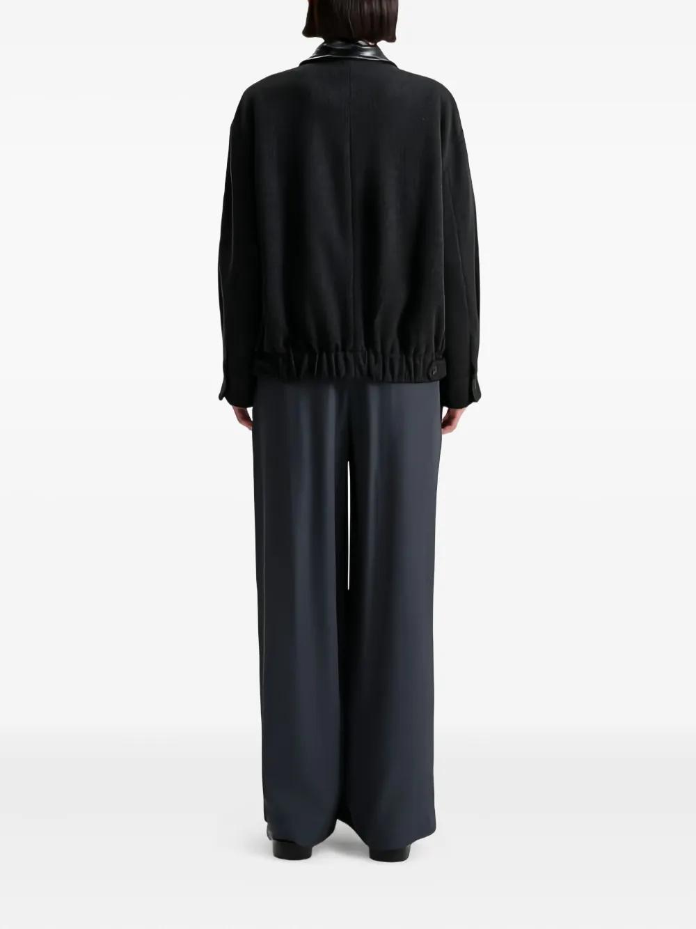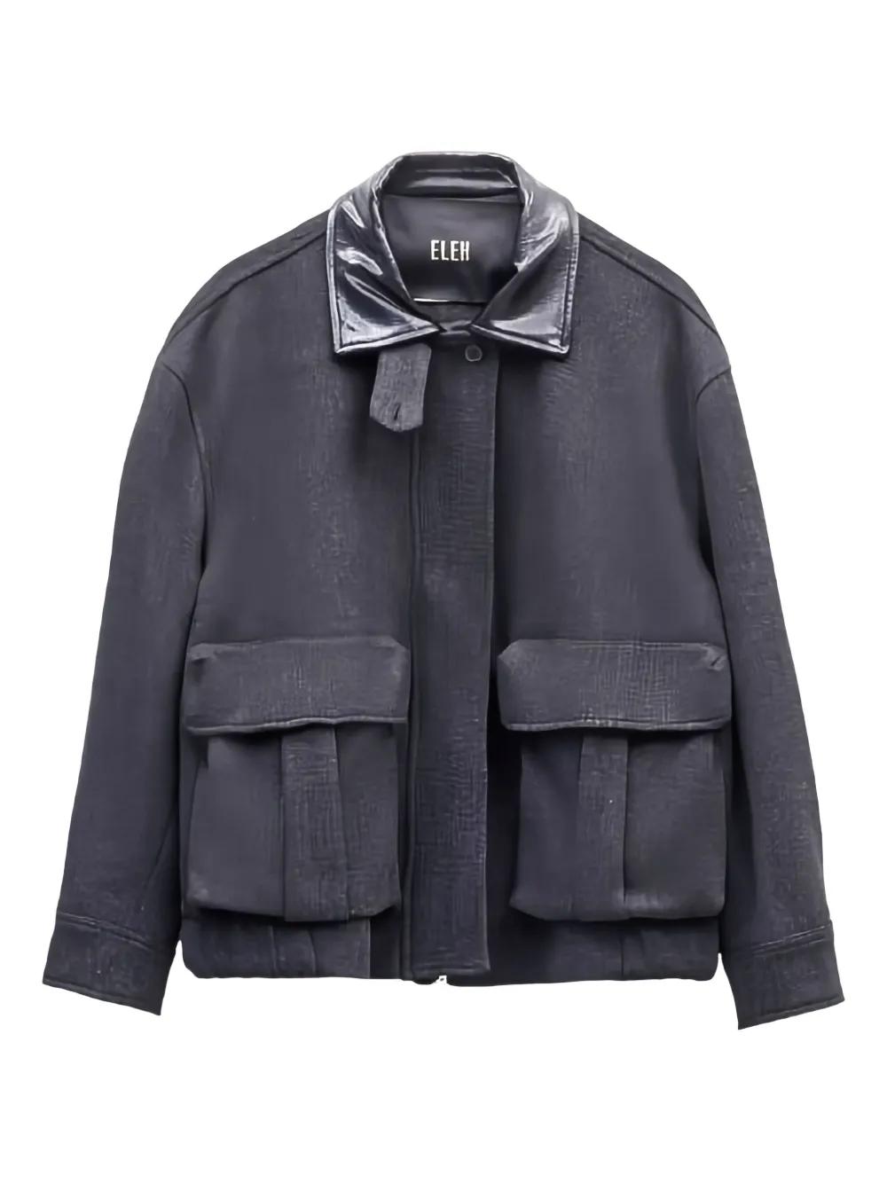 white shirt collar zip front fastening long sleeves welt pockets pleated detail back