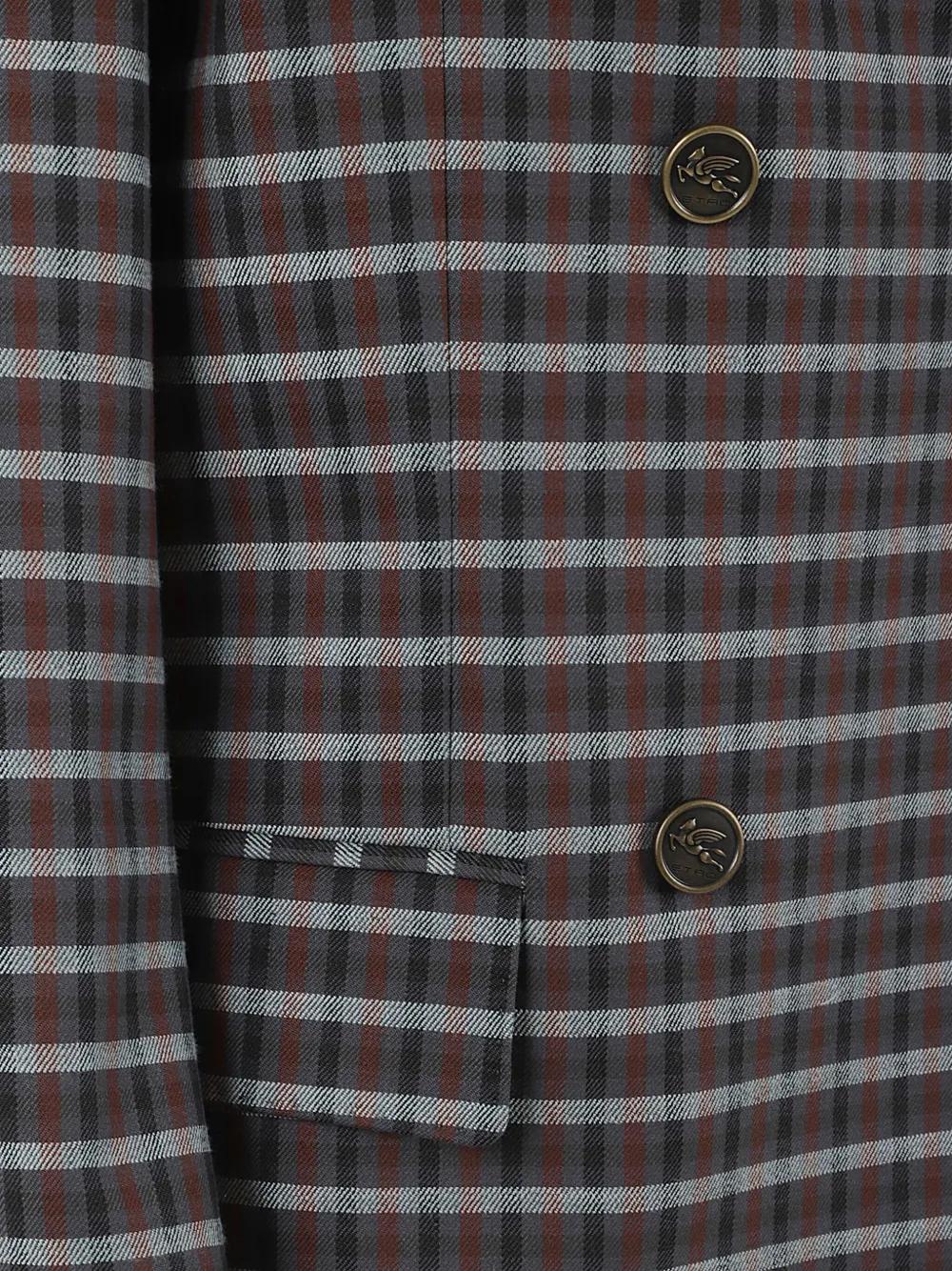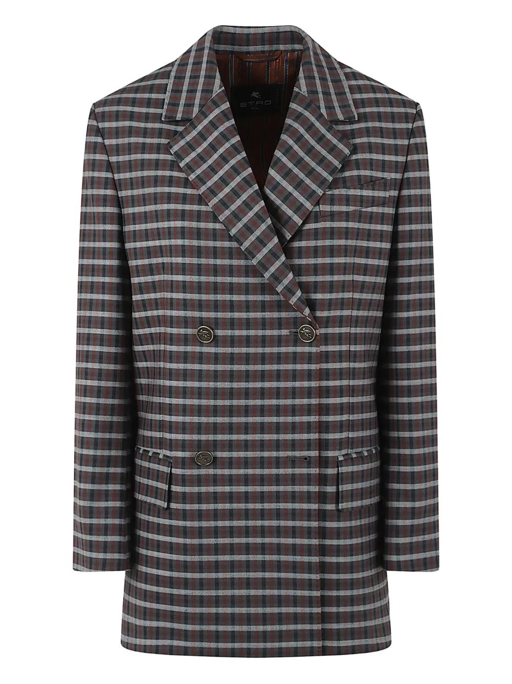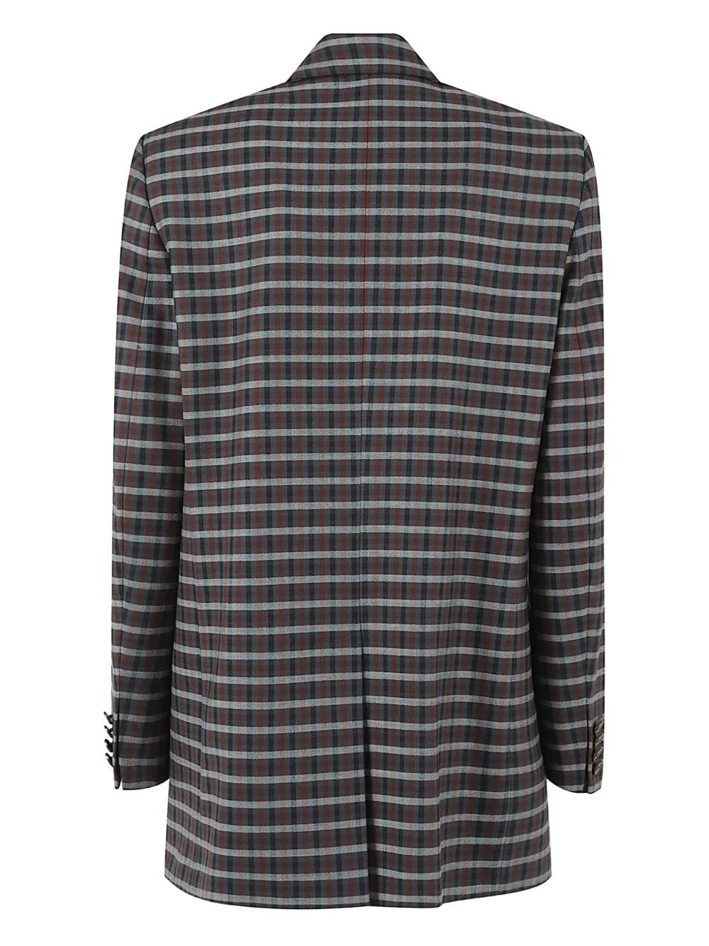 grey/multicolour check pattern double-breasted button fastening front flap pockets long sleeves
