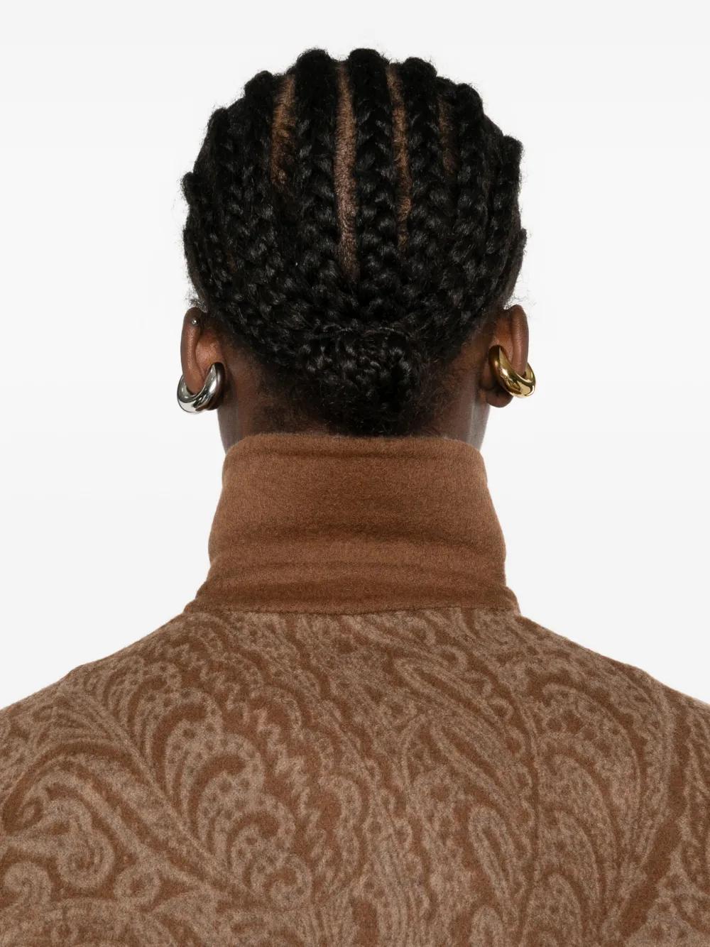 brown paisley pattern chest pocket button fastening point collar long sleeves