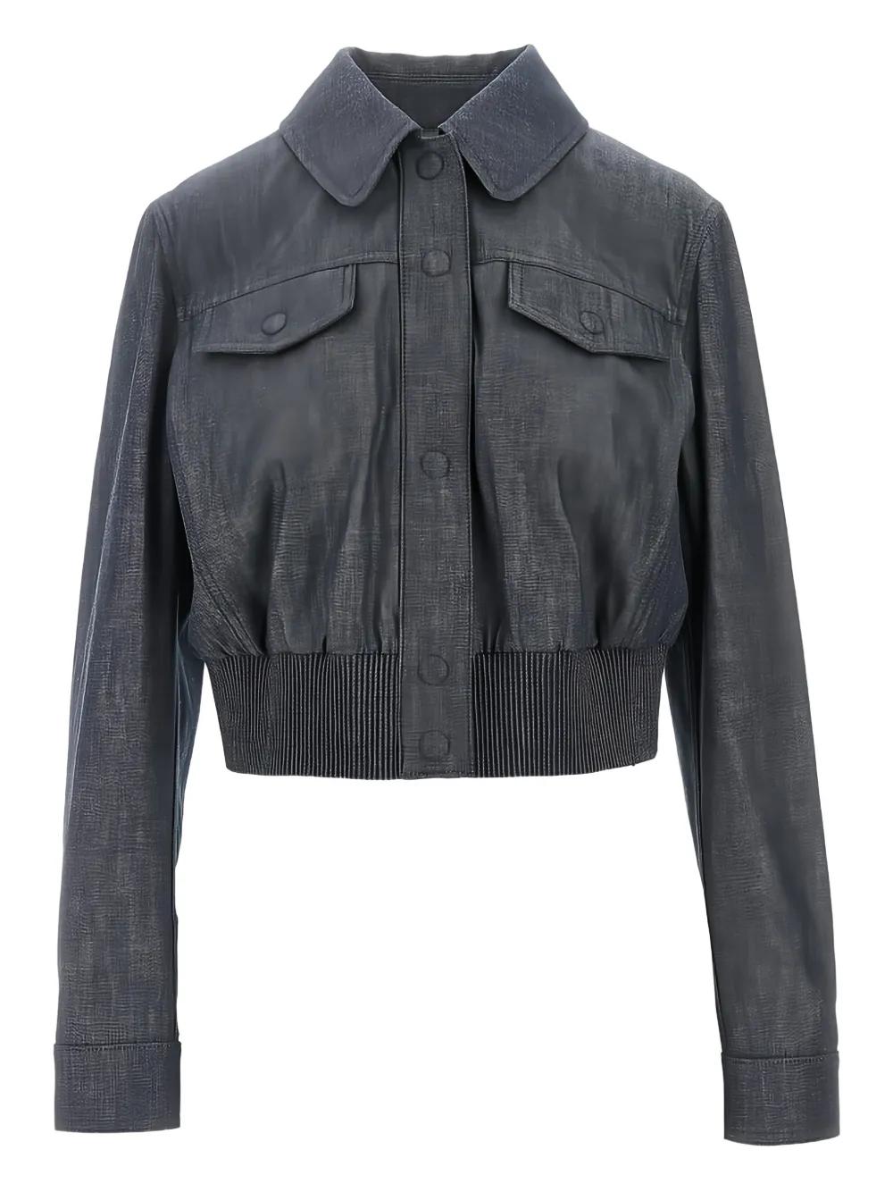blue button fastening two chest pockets elasticated hem buttoned cuffs